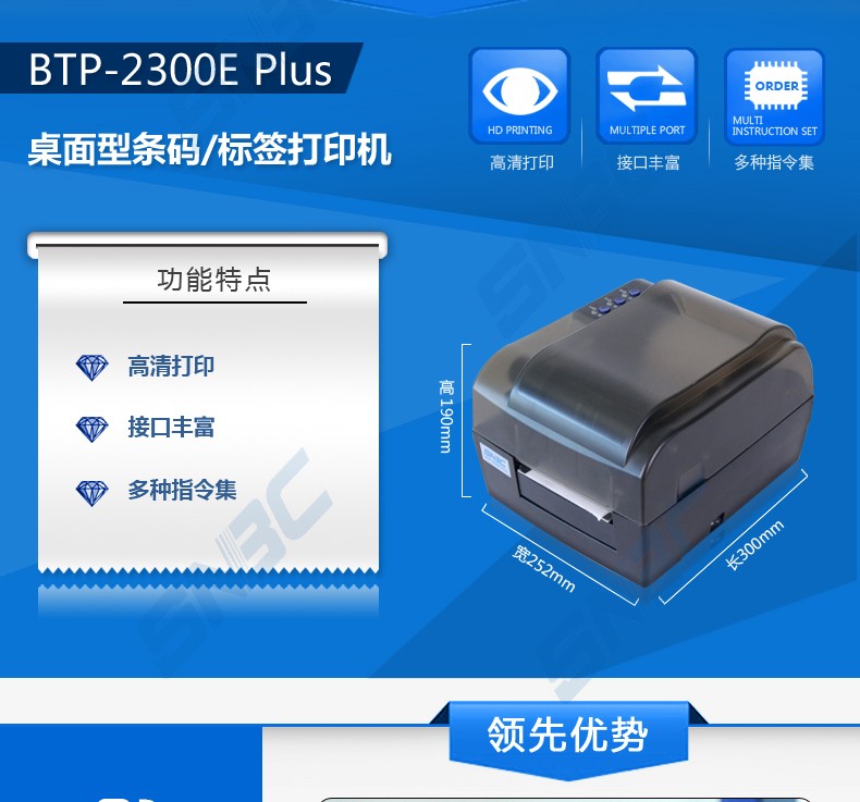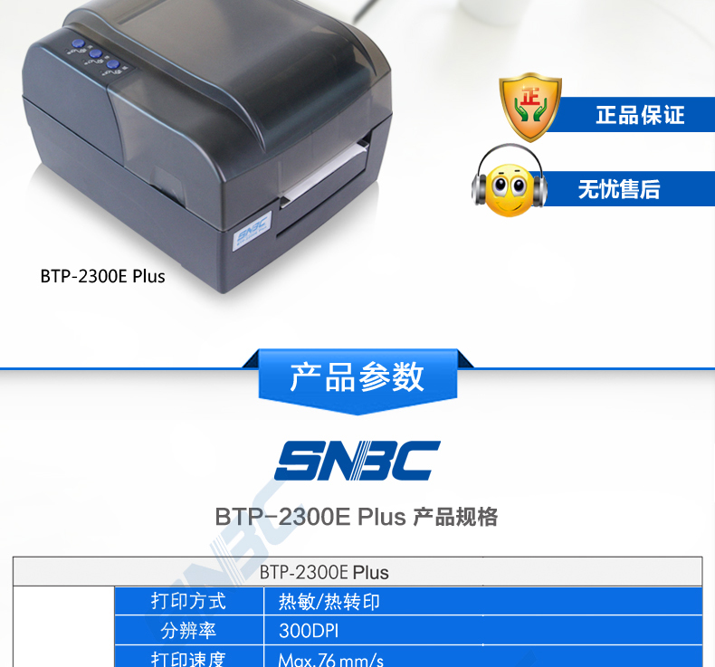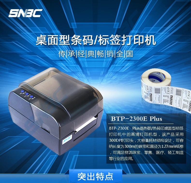 商品名称:新北洋BTP-2300/2200E Plus条码打印机不干胶标签打服装吊牌水洗