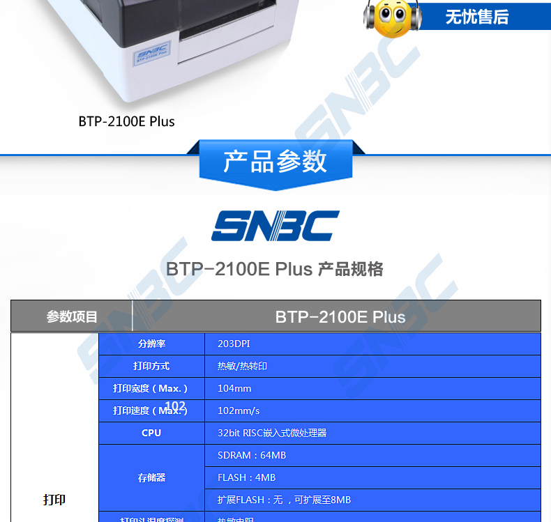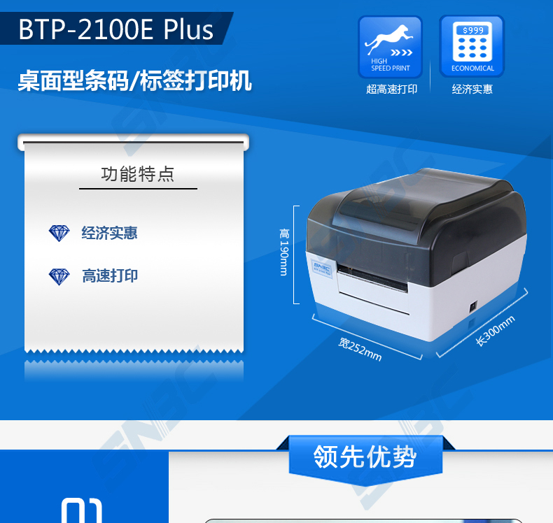 商品名称:新北洋BTP-2100E PLUS 条码打印机SNBC 北洋2100EPLUS标签打印机