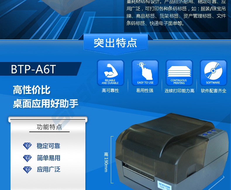 商品名称:北洋BTP-A6T 条码打印机 不干胶 标签打印机 北洋BTP-2200E升级款
