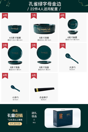 商品名称:北欧碗碟套装家用创意餐具轻奢陶瓷碗个性网红ins碗筷盘子组合22件套