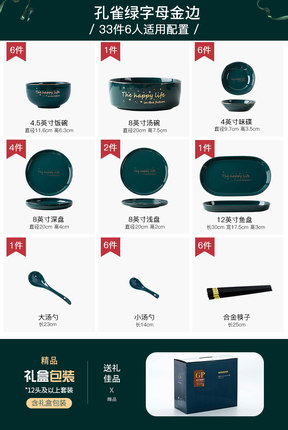 商品名称:北欧碗碟套装家用创意餐具轻奢陶瓷碗个性网红ins碗筷盘子组合33件套*2