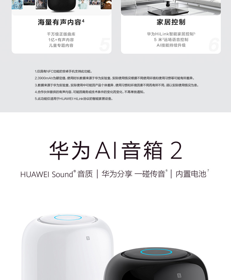 商品名称:华为AI智能音箱原装小艺人工智能语音声控无线蓝牙音响ai2家用电池版丹拿小爱同学精灵小度迷你低音炮立体声