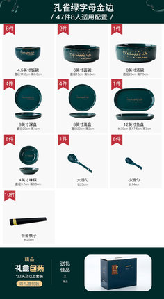 商品名称:北欧碗碟套装家用创意餐具轻奢陶瓷碗个性网红ins碗筷盘子组合47件套