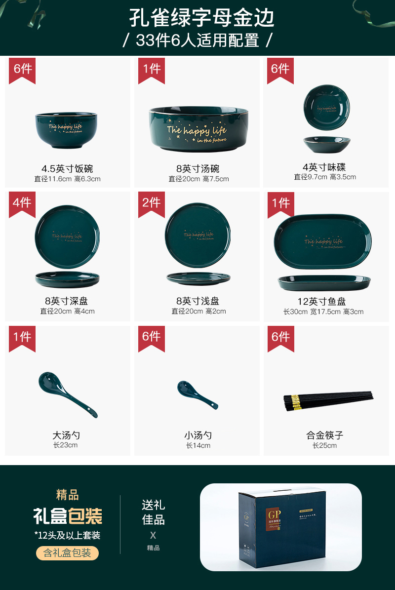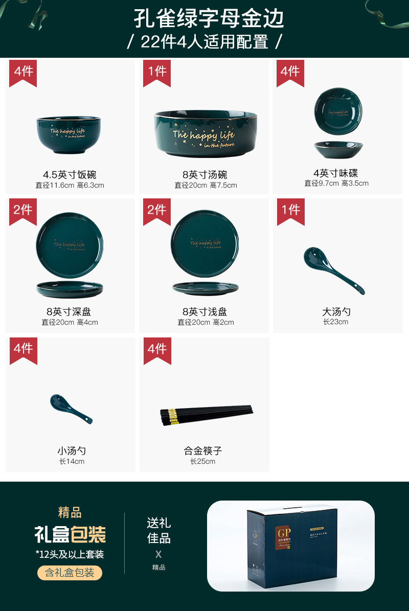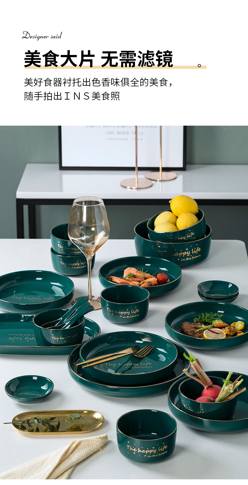 商品名称:北欧碗碟套装家用创意餐具轻奢陶瓷碗个性网红ins碗筷盘子组合47件套*2