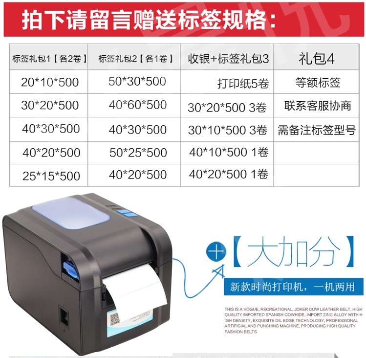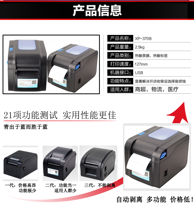 商品名称:芯烨XP-370B/358BM热敏不干胶标签打印机网口条码打印机服装吊牌