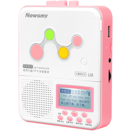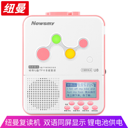 纽曼插卡学习复读机U8锂电版粉色 卡带录音机中小学生磁带机英语教学用中英文同步U盘转录mp3播放机可充电