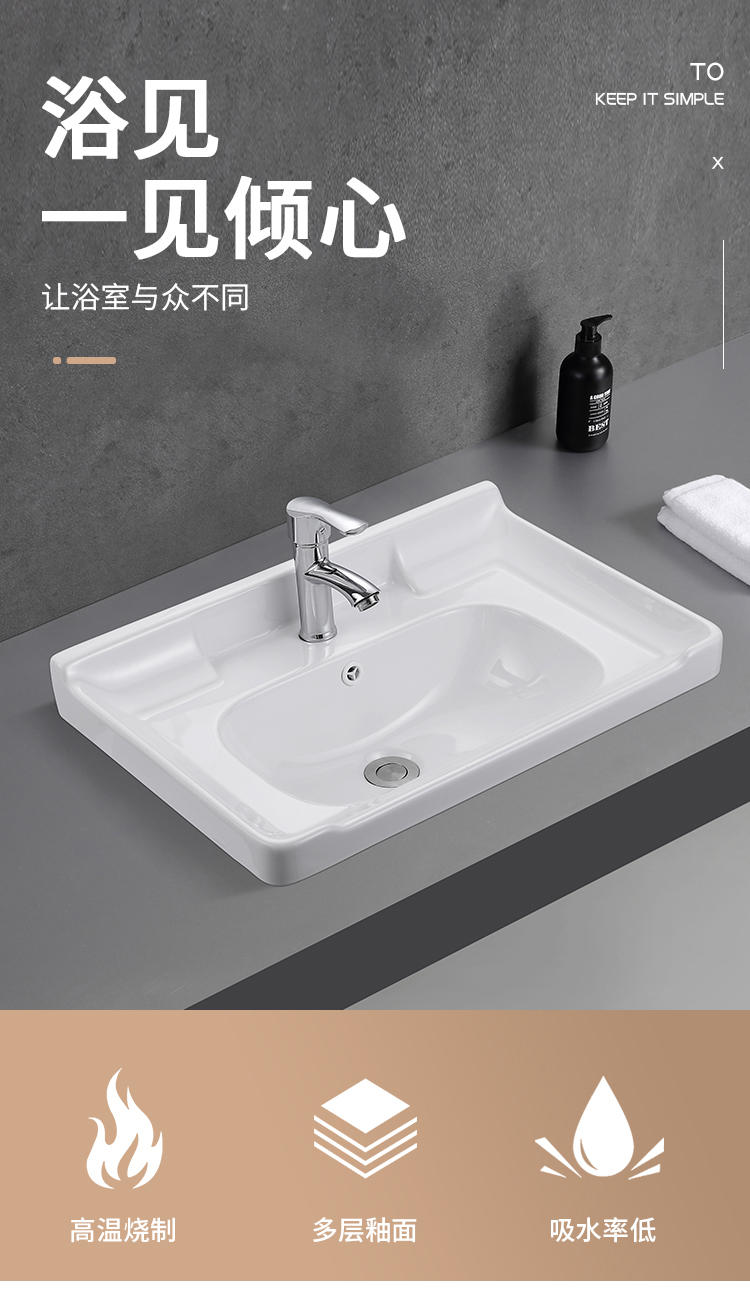 商品名称:洁派尼半嵌入式洗脸盆卫生间陶瓷洗手盆一体盆浴室柜单盆家用台盆浴柜盆