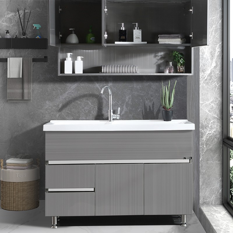 华仕艾肯不锈钢双盆洗衣柜组合带搓板阳台柜落地浴室柜洗衣池