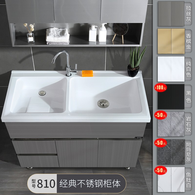 商品名称:华仕艾肯不锈钢双盆洗衣柜组合带搓板阳台柜落地浴室柜洗衣池