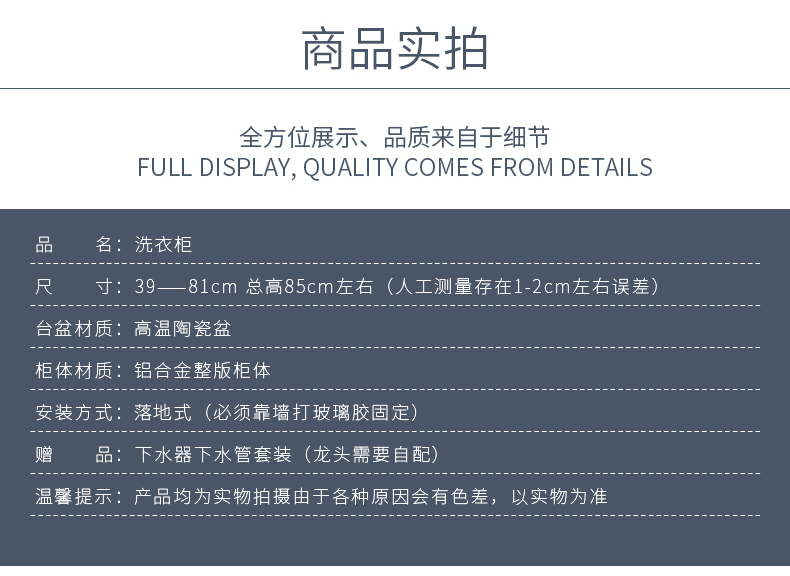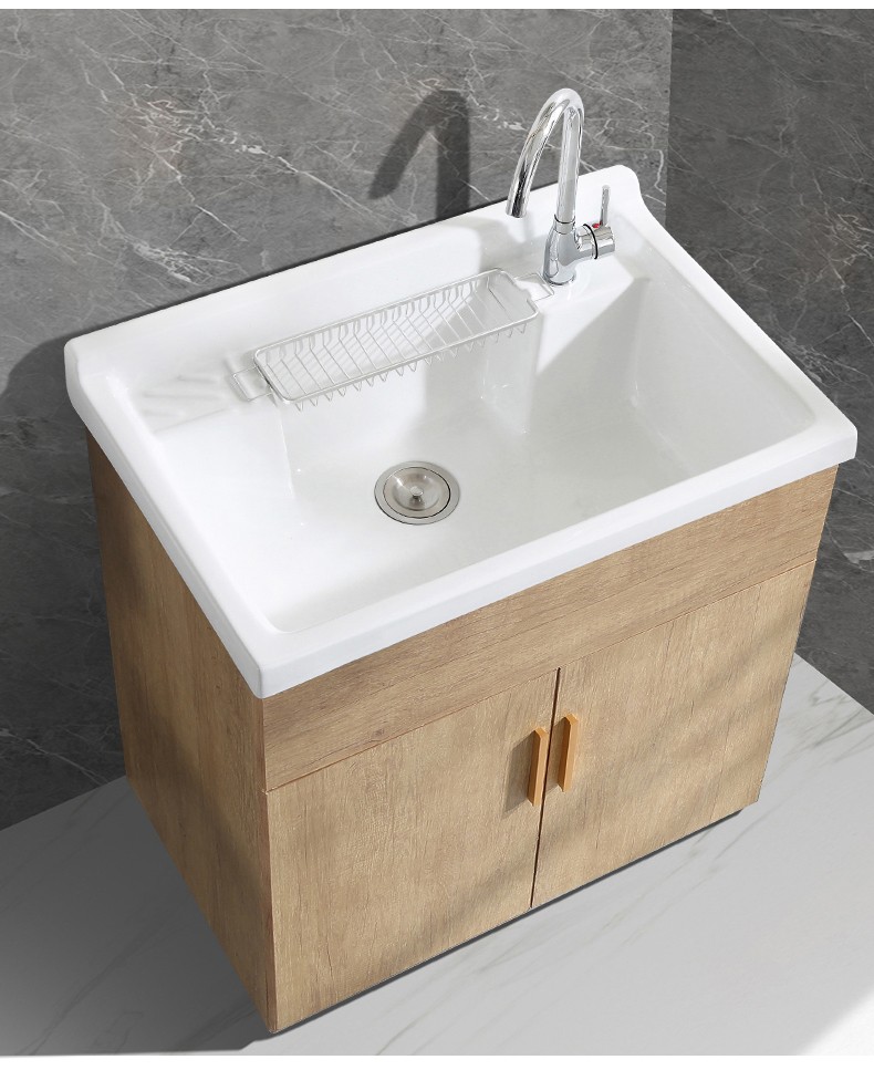 商品名称:华仕艾肯太空铝洗衣柜加深陶瓷洗衣池带搓衣板洗漱台不锈钢阳台柜