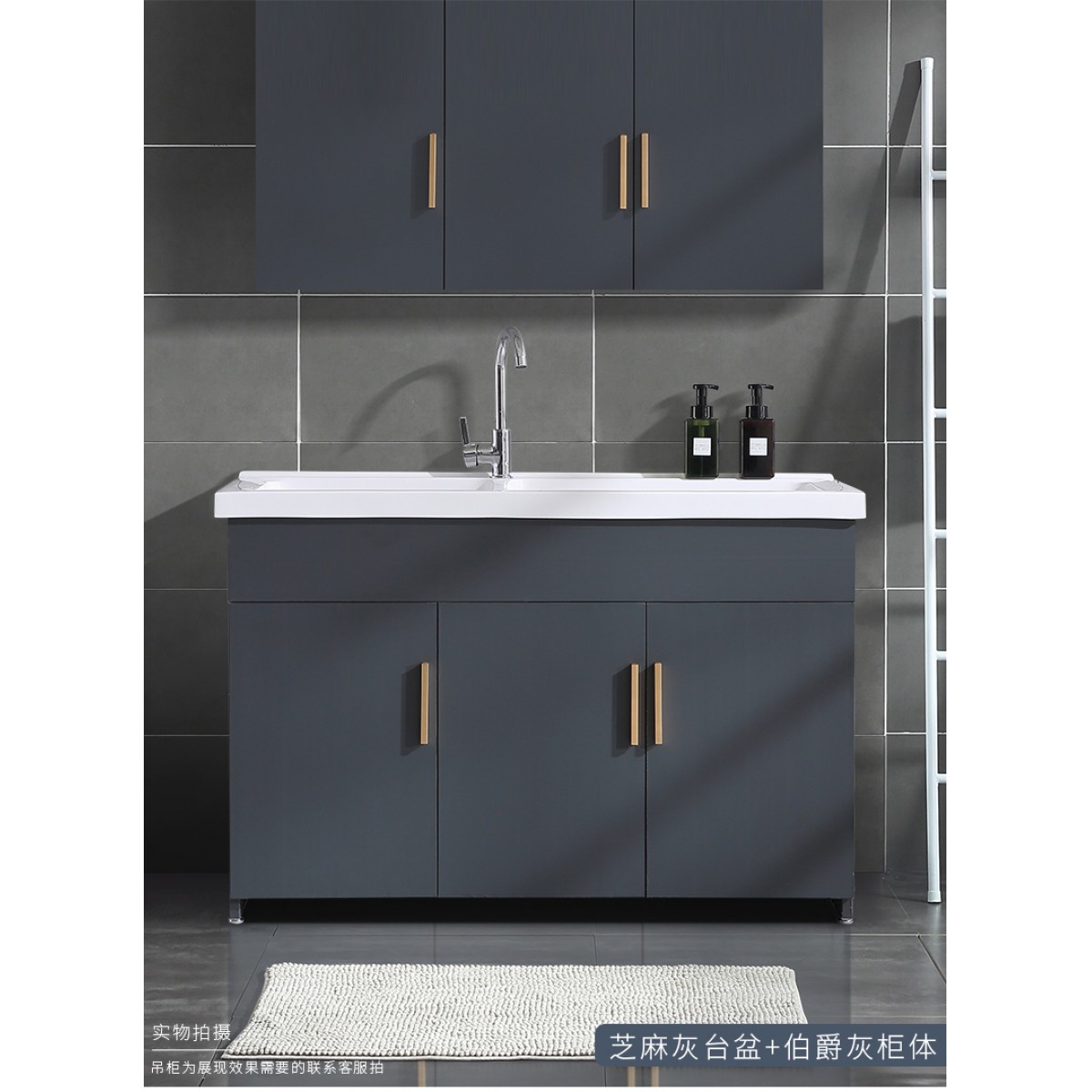 华仕艾肯洗衣柜双盆洗衣池带搓衣板轻奢加厚太空铝浴室柜阳台柜