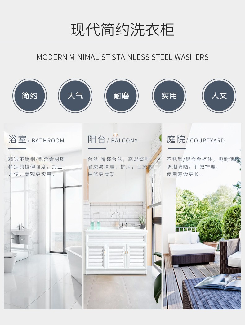 商品名称:华仕艾肯洗衣柜双盆洗衣池带搓衣板轻奢加厚太空铝浴室柜阳台柜