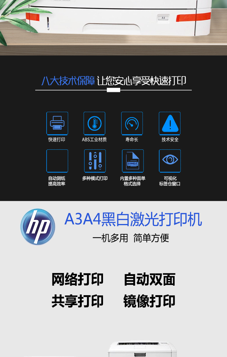 商品名称:惠普5200 A3黑白不干胶激光打印机办公CAD图纸硫酸纸请柬厚纸蓝图