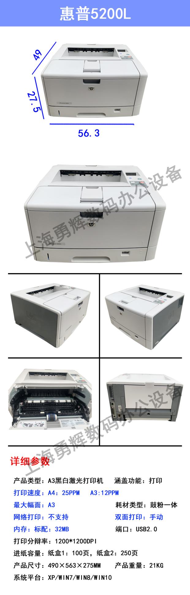 商品名称:惠普HP5200 A3黑白激光打印机 HP5200DTN双面网络打印机办公家用