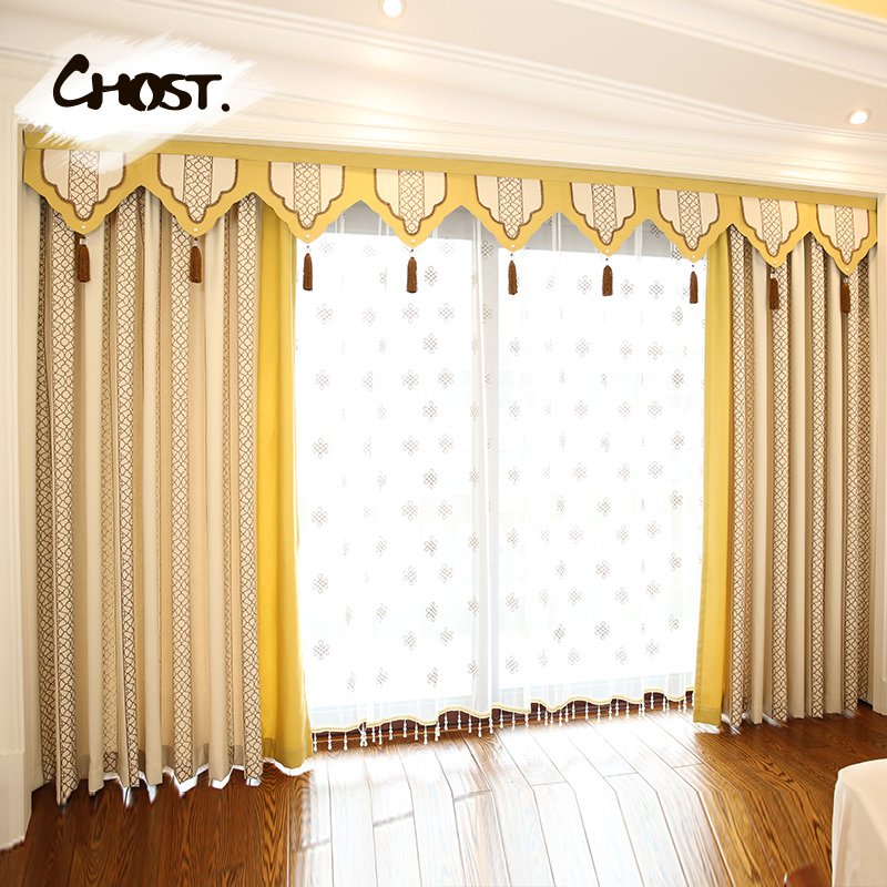 商品名称:新中式中式拼黄棉麻布料客厅卧室书房落地窗遮光窗帘窗纱窗幔定制/米