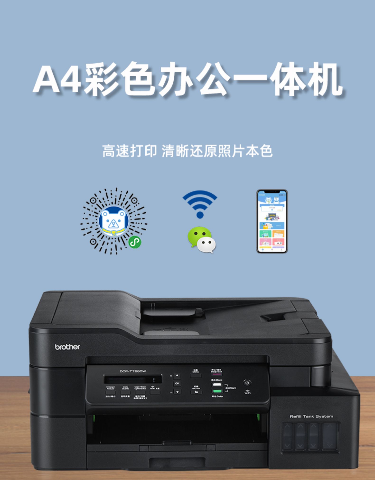 兄弟DCP-T425W/420W/725DW彩色喷墨打印机复印一体机无线墨仓家用