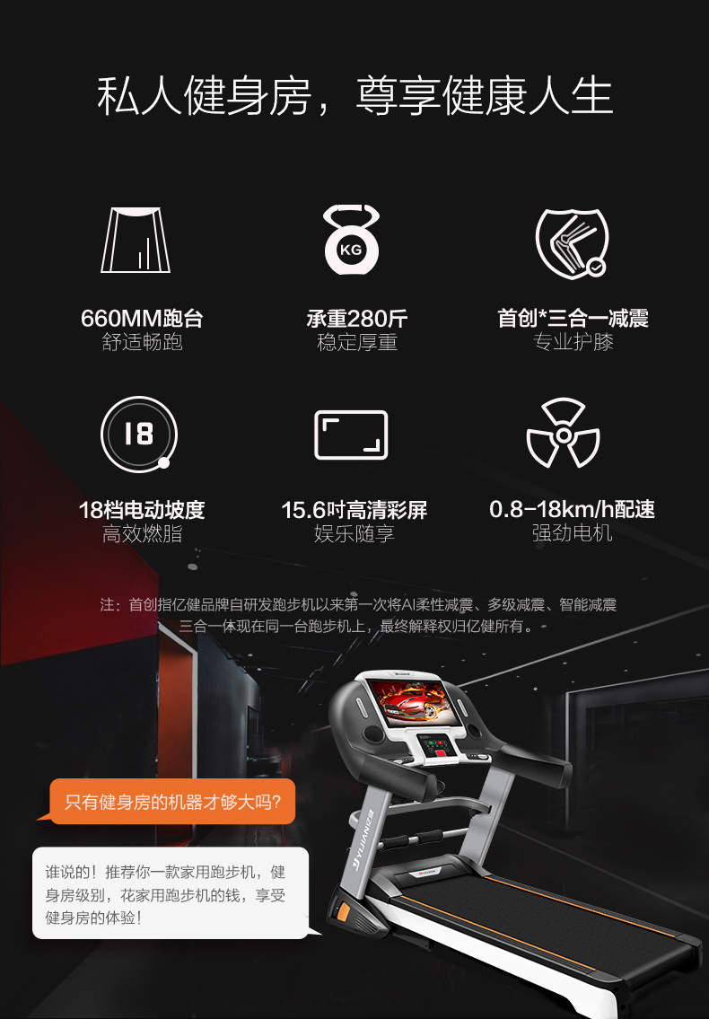 商品名称:亿健跑步机家用款健身房专用可折叠静音A5小型女室内品牌大型男士