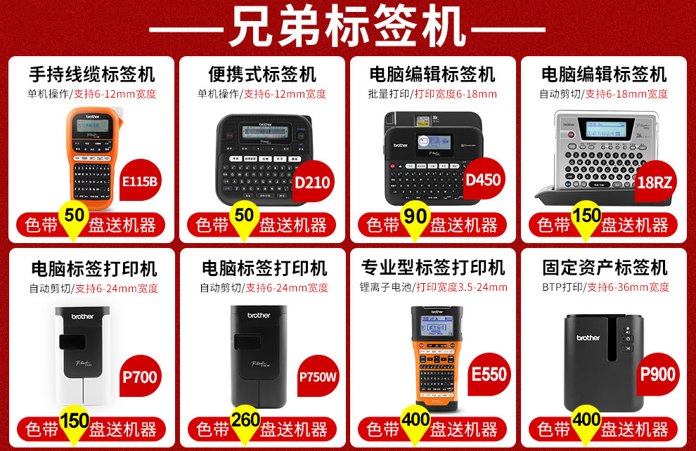 兄弟(brother)标签机PT-E115B标签打印机不干胶打印机便携式手持式线缆布线替PTE115