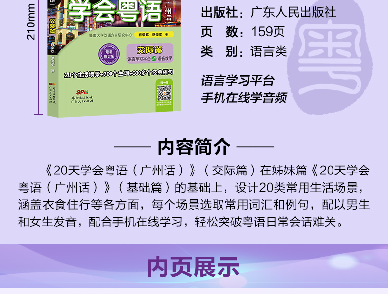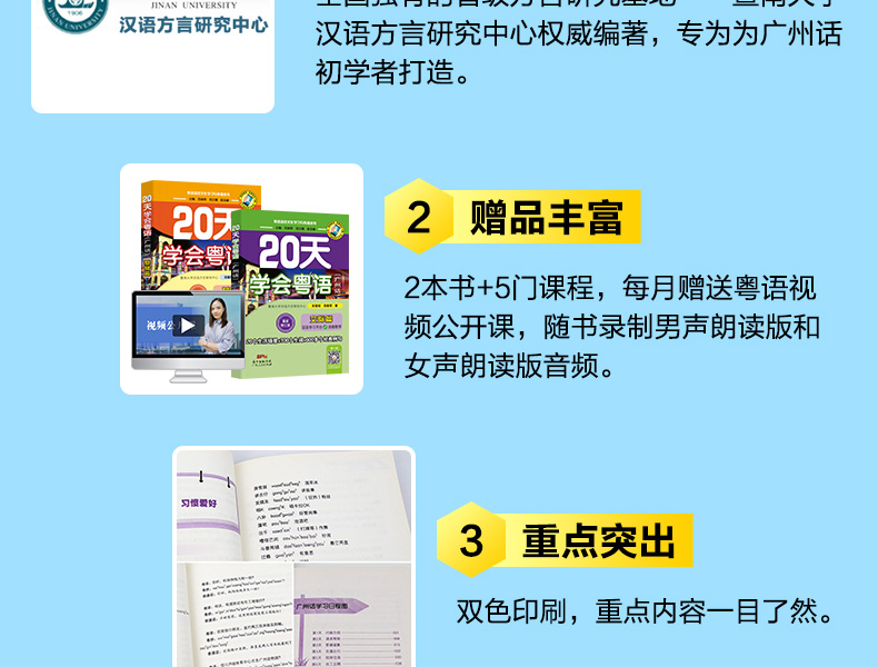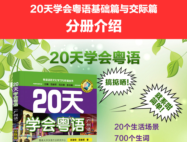 商品名称:正版 20天学会粤语书送课程套装 粤语交际篇基础篇 粤语拼音入门的书新手粤语教程学粤语书零基础白话速成教材 学广东话香港话书籍