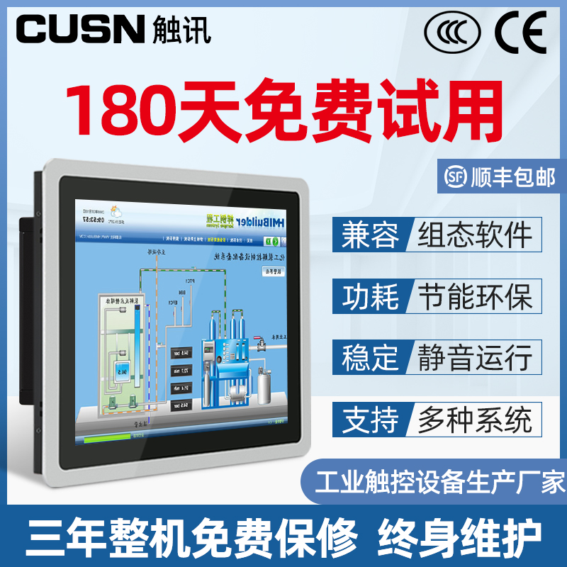 CUSN 10.4/12/17/19/15英寸工控一体机嵌入式触摸屏车间PLC壁挂电阻电容触控显示器安卓全封闭工业平板电脑