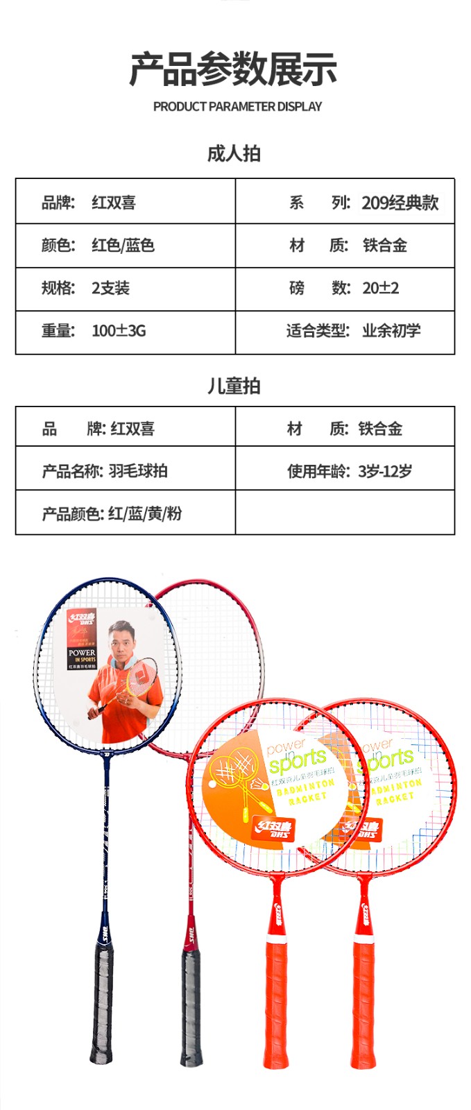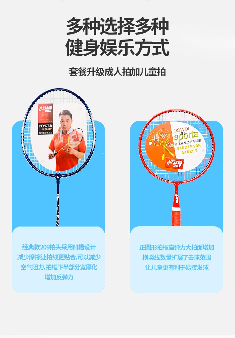 商品名称:红双喜亲子羽毛球拍套装成人儿童小学生初学耐打羽球拍超轻羽毛球