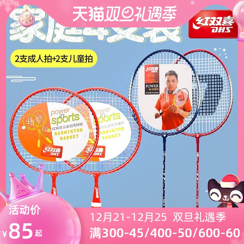 红双喜亲子羽毛球拍套装成人儿童小学生初学耐打羽球拍超轻羽毛球