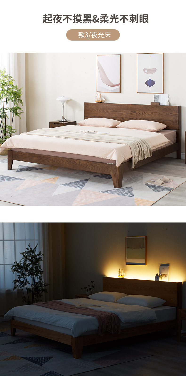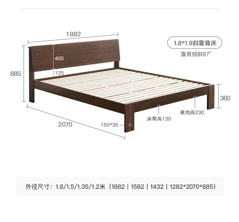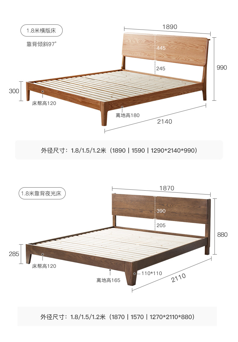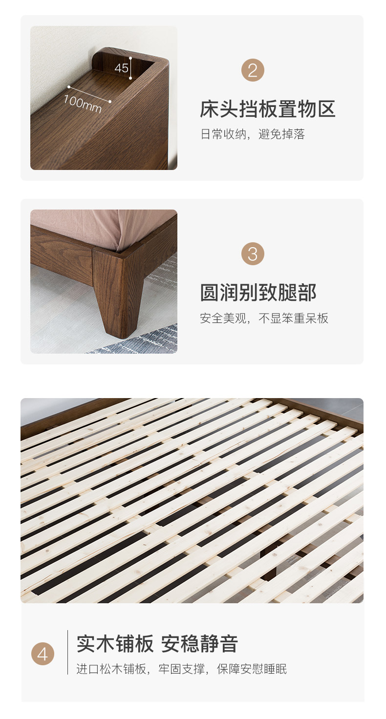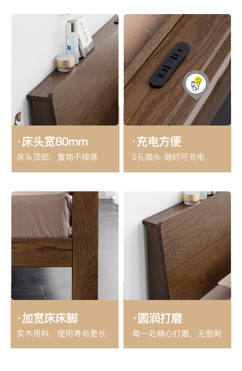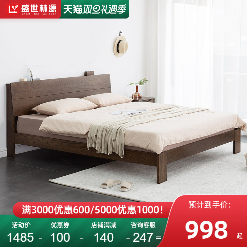 商品名称:盛世林源北欧纯实木床1.5/1.8米橡木现代双人床日式简约卧室家具