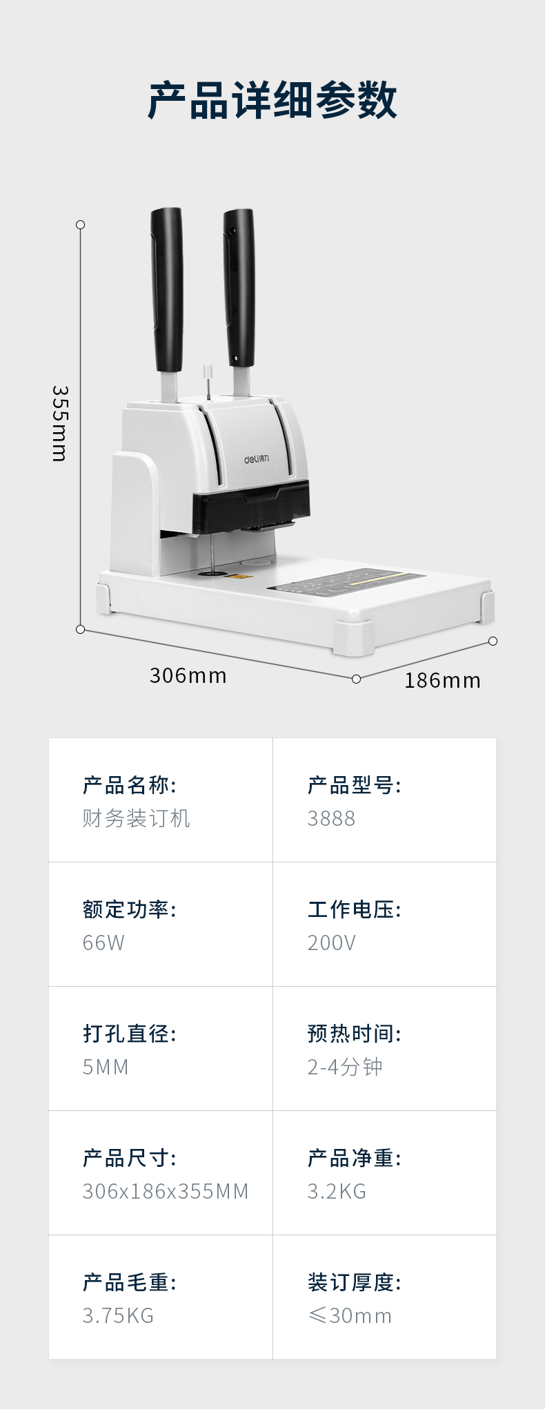 商品名称:得力3888凭证装订机财务会计凭证专用档案票据打孔机热熔铆管手动小型简易会计凭证装订机财务装订机