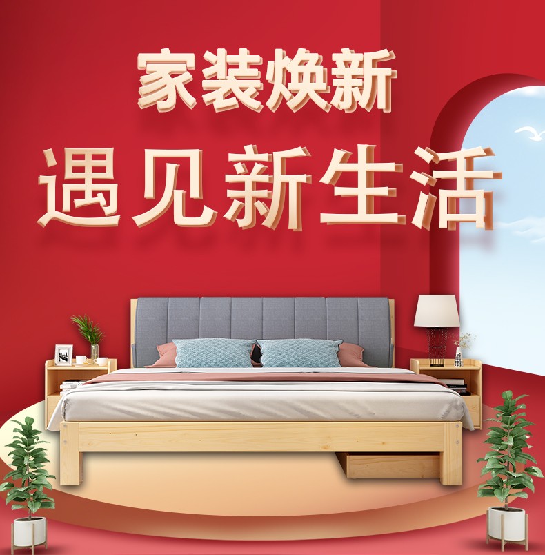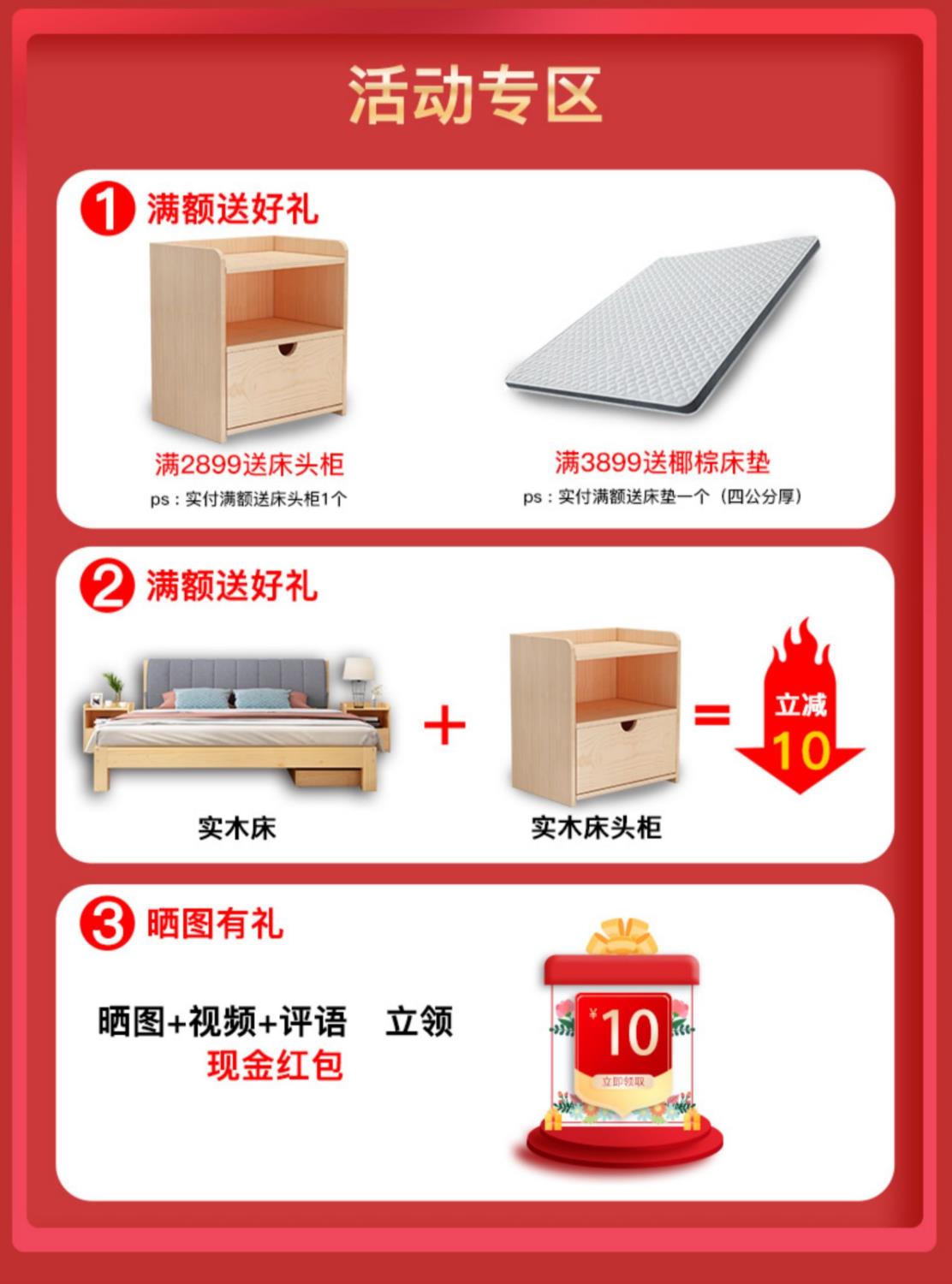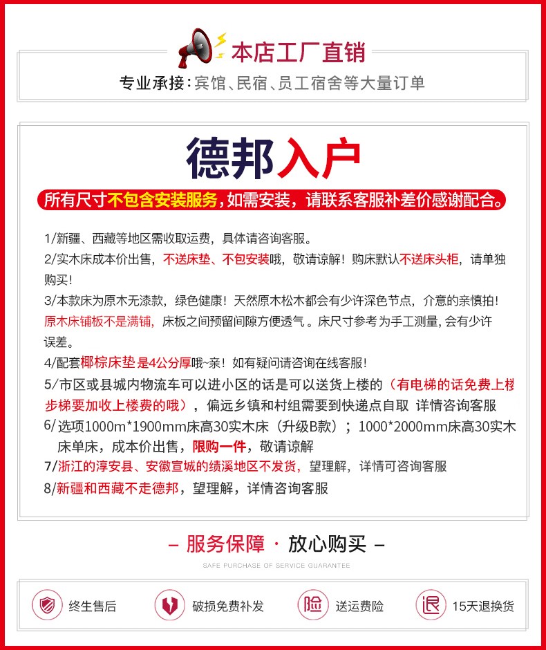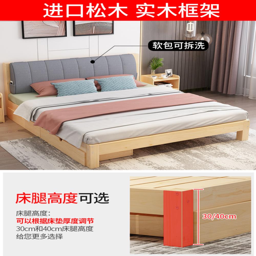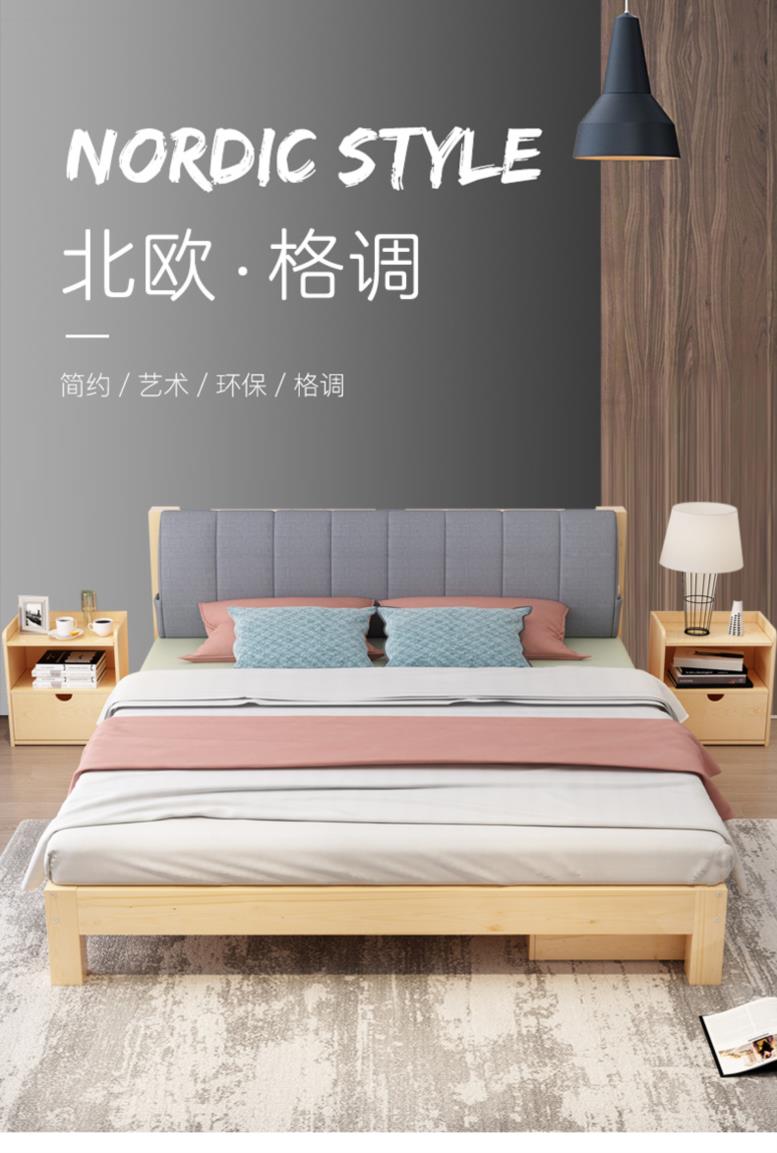 商品名称:实木床现代简约1.8米双人床1.5m单人简易松木床架经济型出租房床