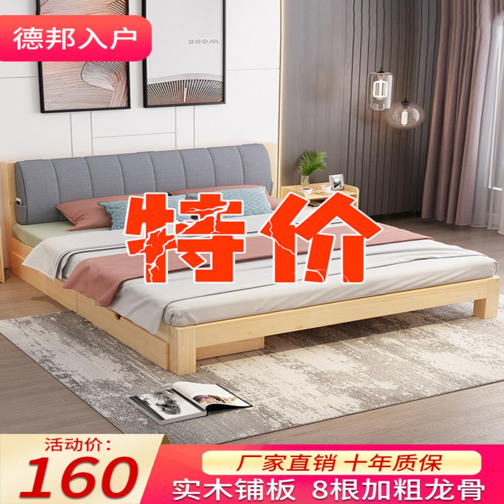 实木床现代简约1.8米双人床1.5m单人简易松木床架经济型出租房床
