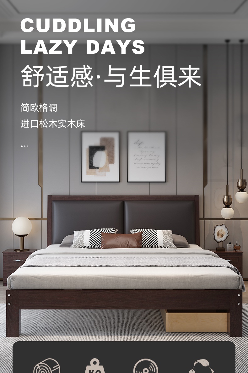 商品名称:简易出租双人床简约松木1.2b米床架经济木床房单人床1.8m实现代型