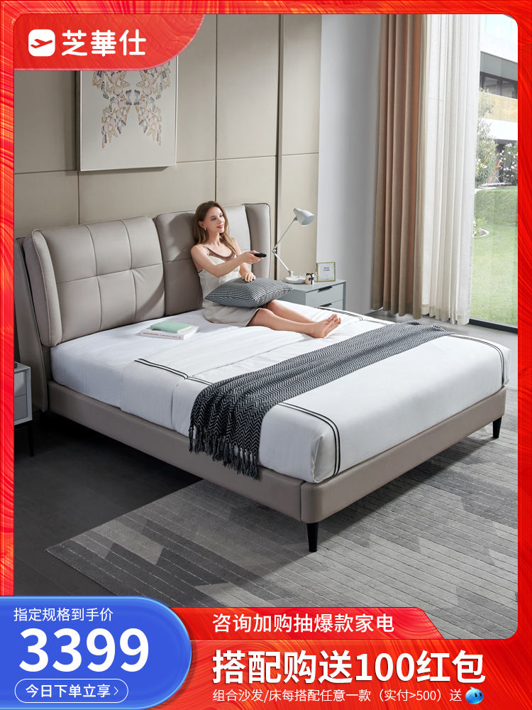 芝华仕布床现代简约1.5米高箱主卧双人芝华士大床卧室储物C074