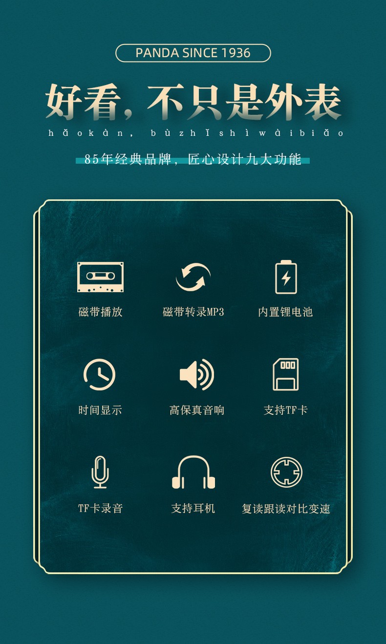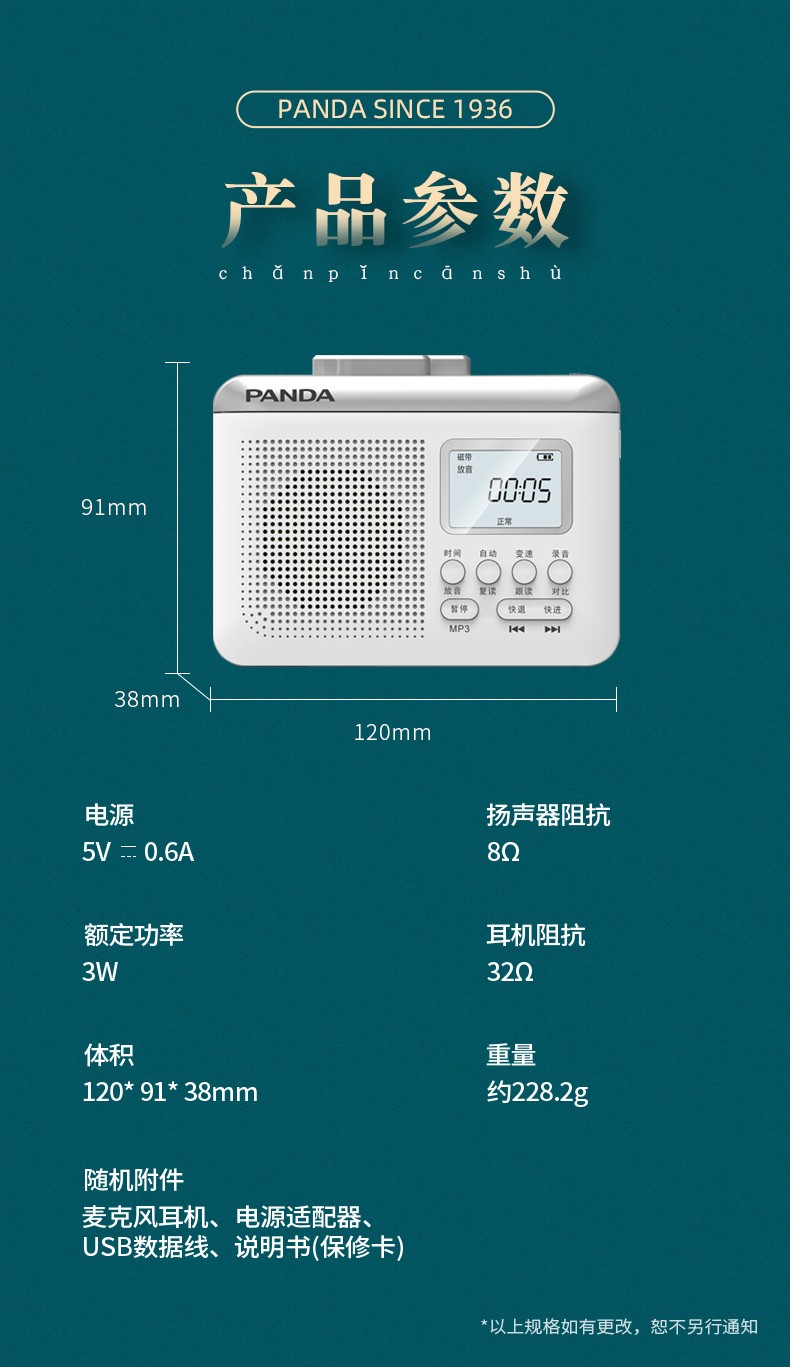 商品名称:PANDA/熊猫 F-381磁带机单放机随身听卡带机转MP3转换器插卡充电录音学生英语复读机播放器录放机可充电