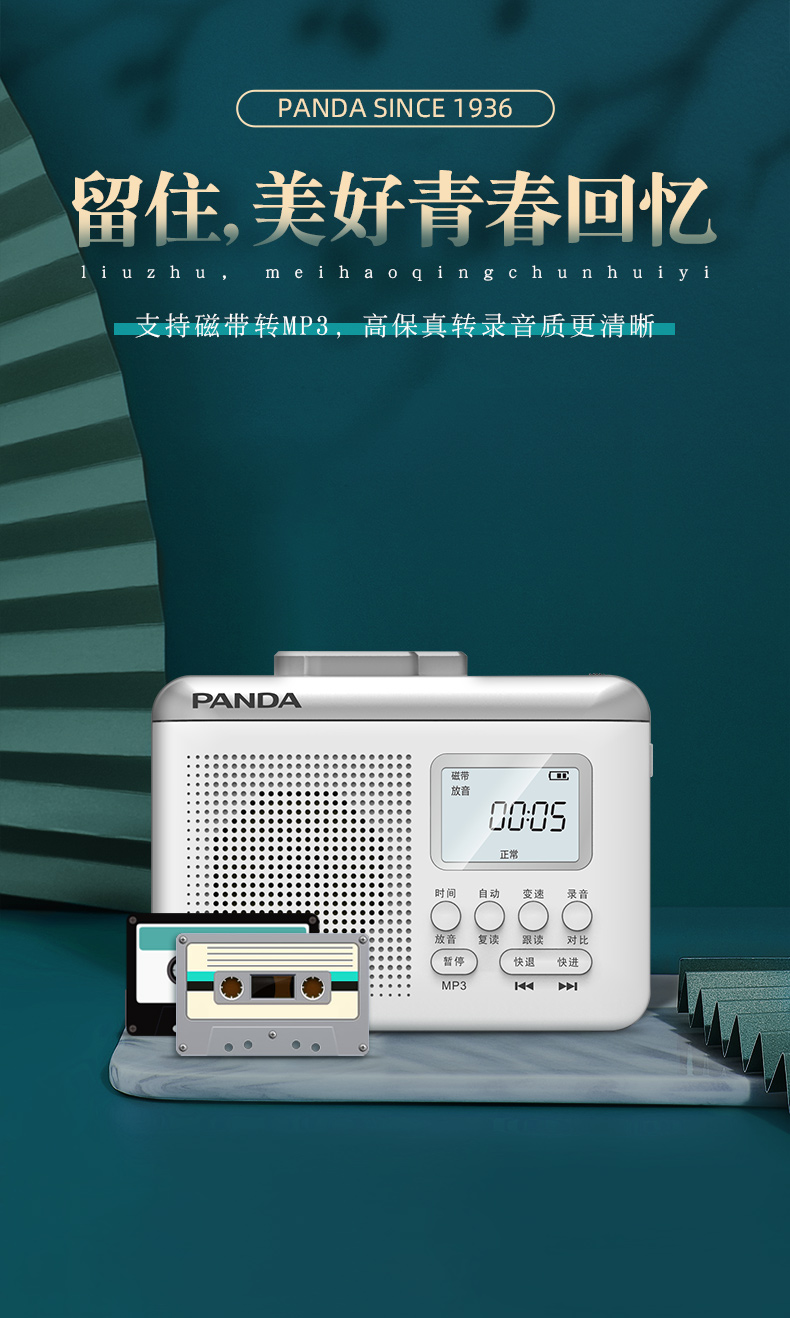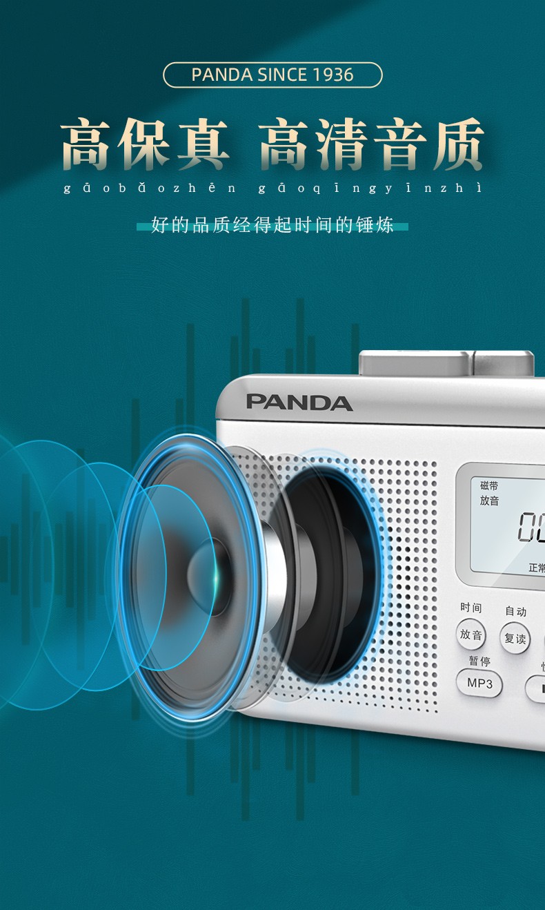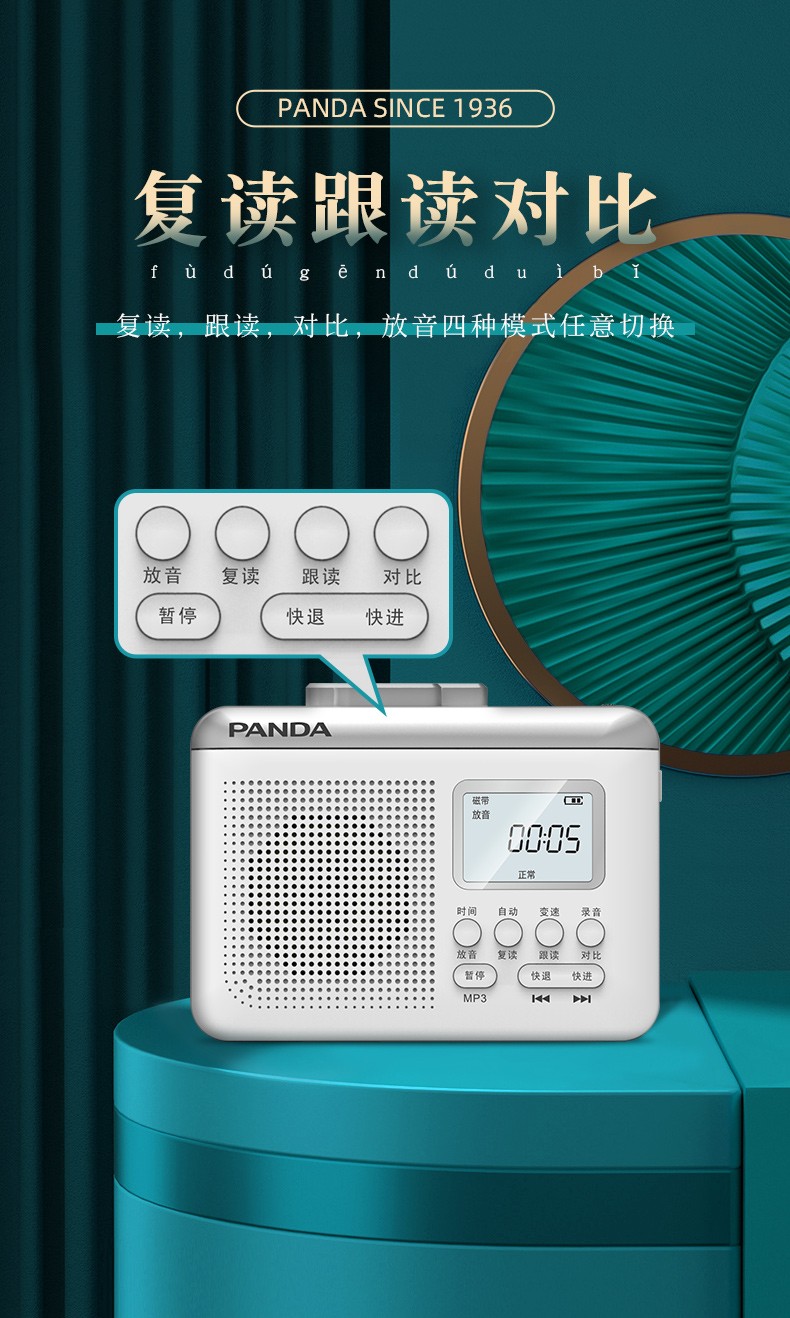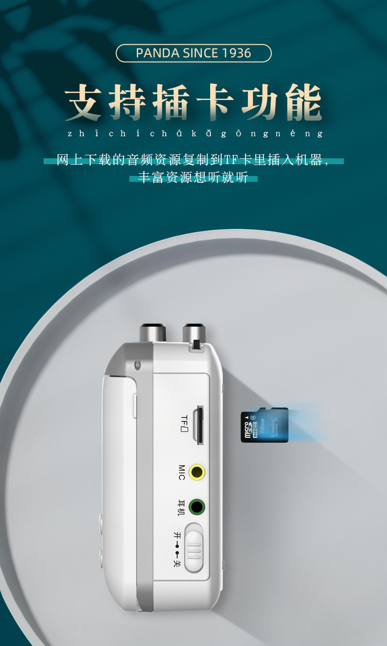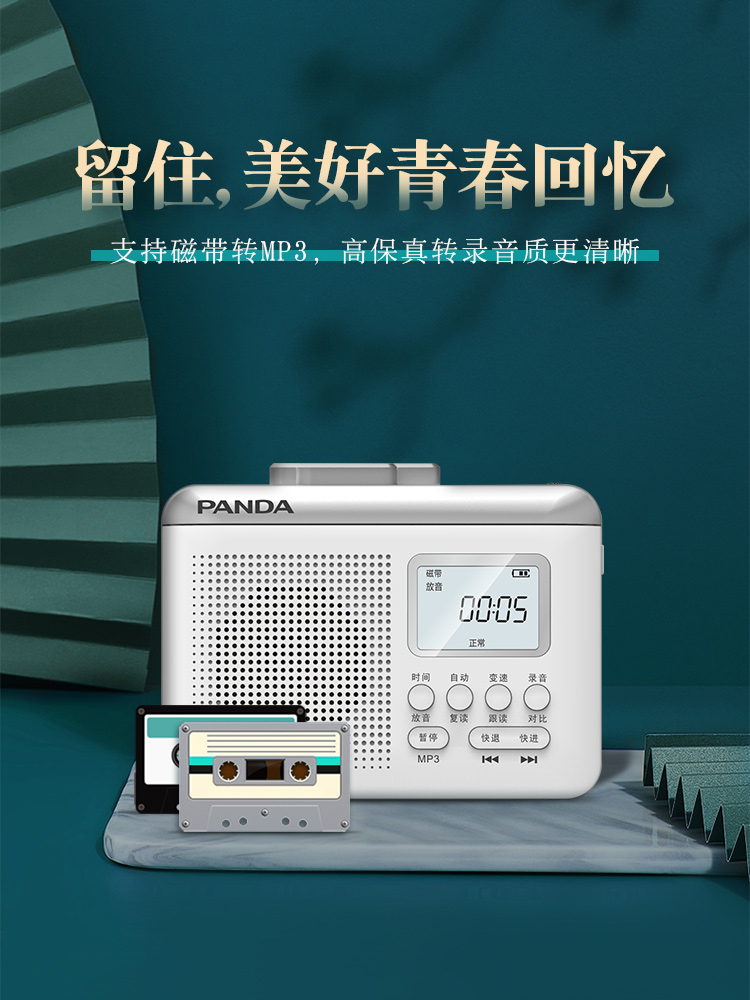 PANDA/熊猫 F-381磁带机单放机随身听卡带机转MP3转换器插卡充电录音学生英语复读机播放器录放机可充电
