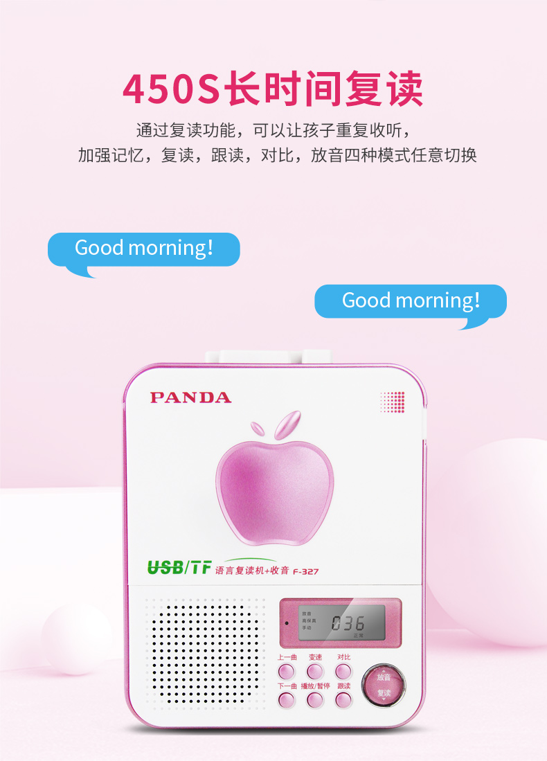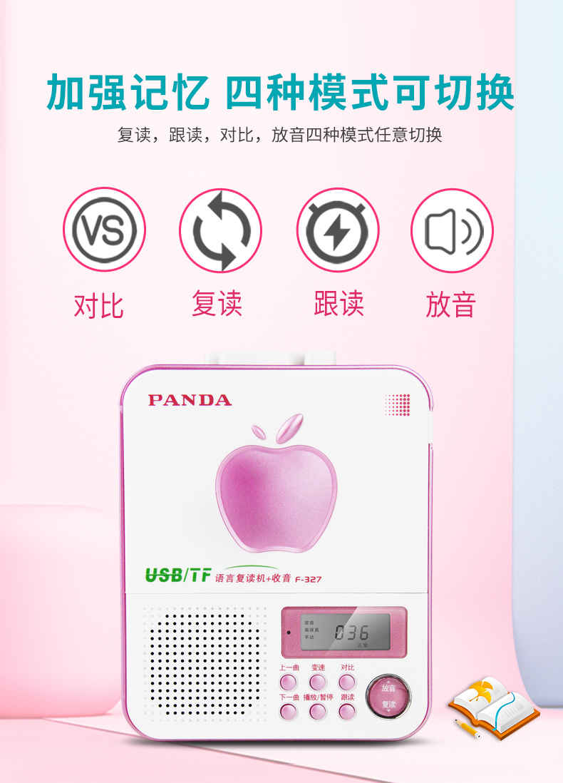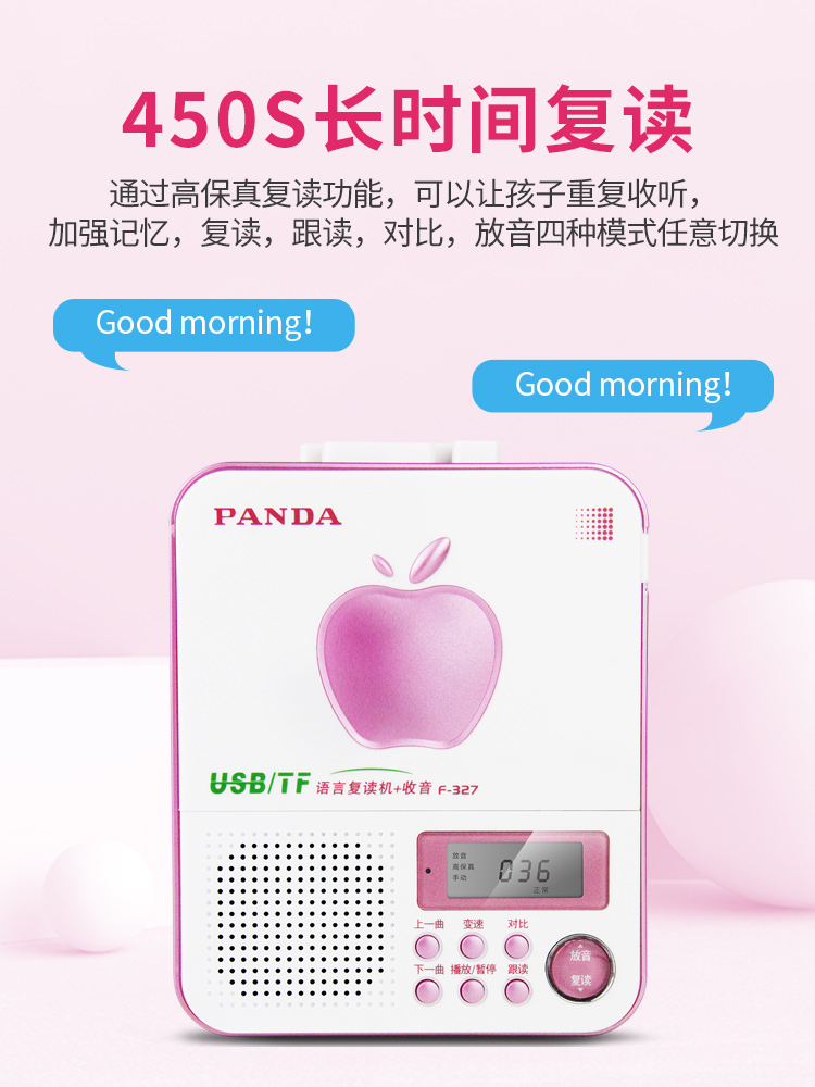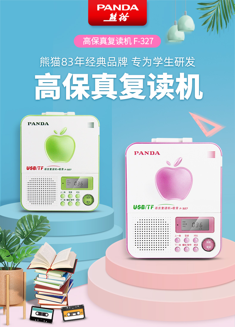 PANDA/熊猫F-327语言复读机录音机磁带播放机英语学习复读插卡插u盘mp3播放学习便携随身听播放机充电磁带机