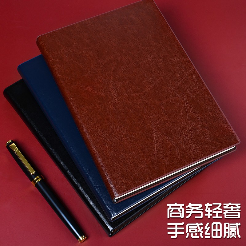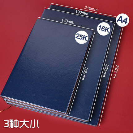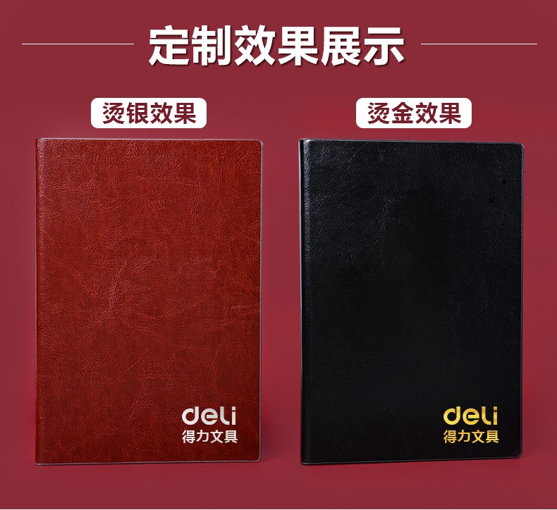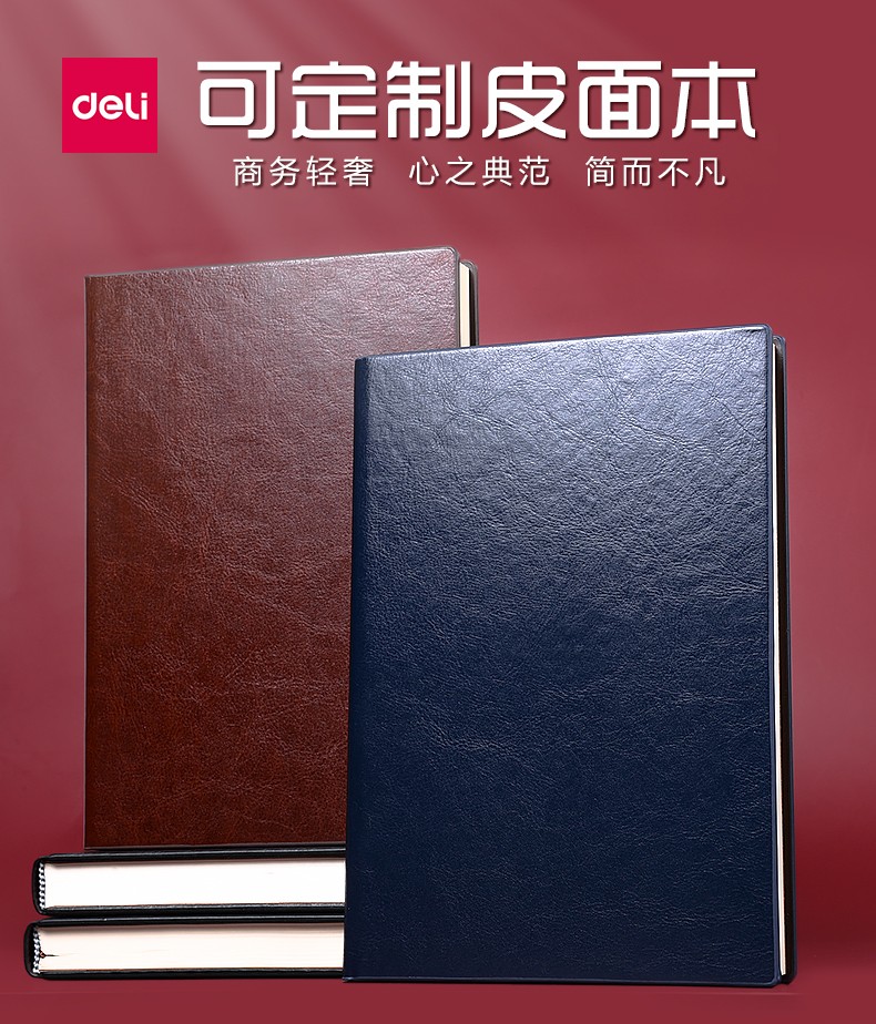 得力办公PU皮面本商务高档米黄道林纸笔记本工作会议记事本16K大号A4硬壳加厚3185本子文具定制企业logo印字