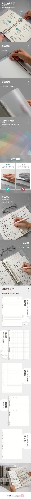 商品名称:三年二班 笔记本简约不硌手活页本B5可拆卸A4考研笔记本子替芯厚100g活页纸学生大容量活页夹外壳线圈方格a5