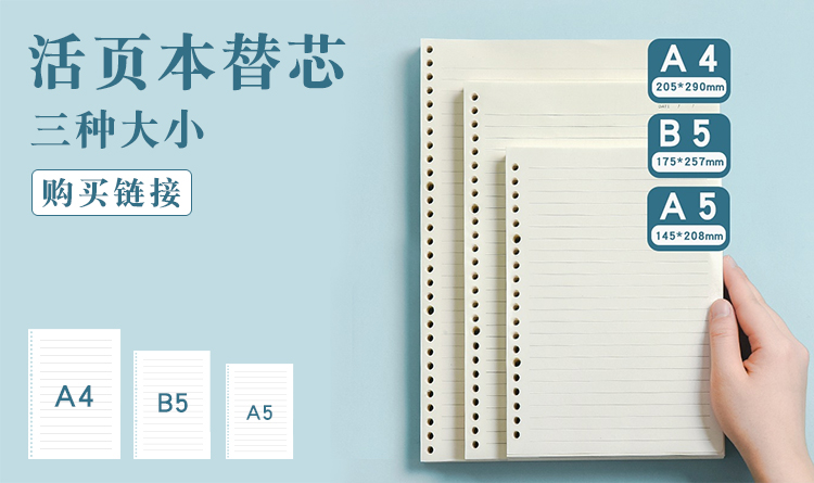 三年二班 笔记本简约不硌手活页本B5可拆卸A4考研笔记本子替芯厚100g活页纸学生大容量活页夹外壳线圈方格a5