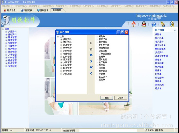 电子ERP软件 明歆M22 订单外发加工型企业软件