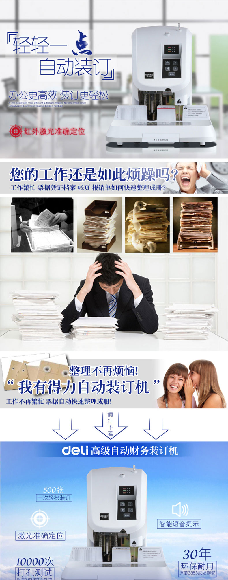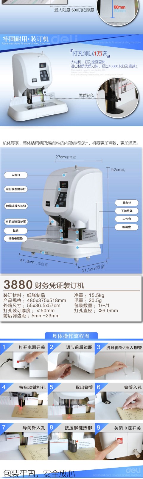 商品名称:得力3880全自动装订机电动打孔机财务凭证装订机热熔胶铆管装订机
