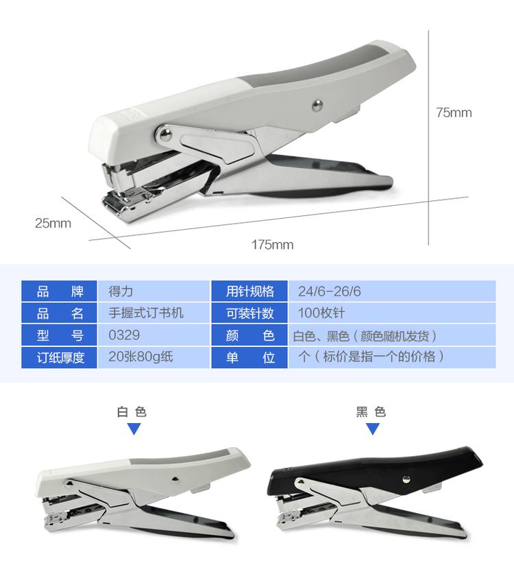 商品名称:得力大号钉书机手握式订书机办公省力定书机装订器手动订书器书钉