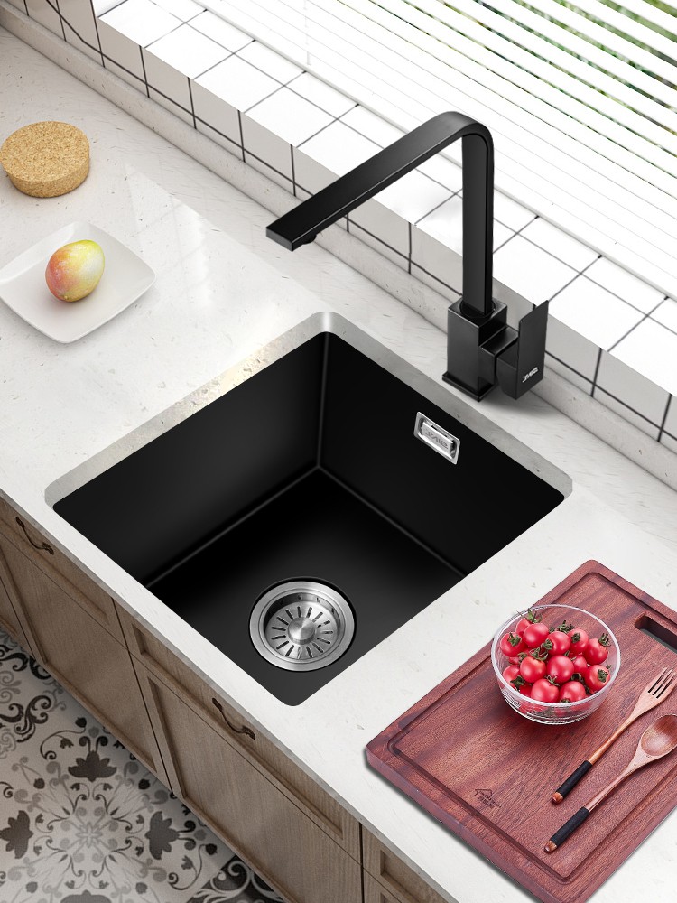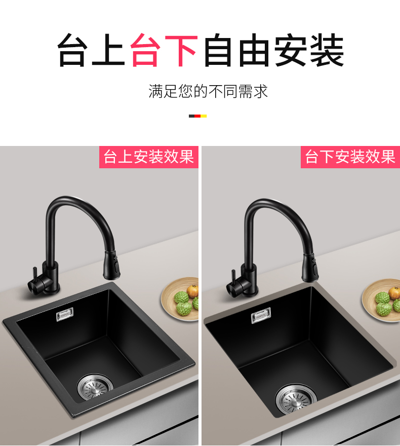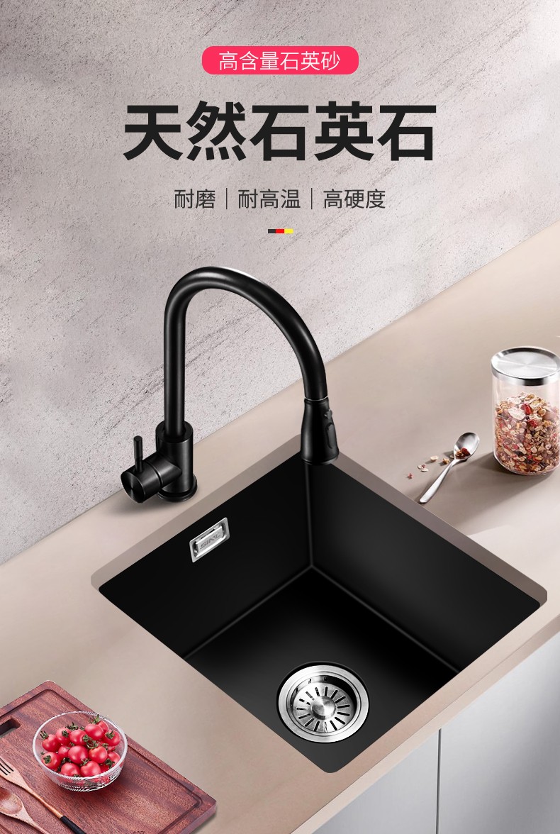 商品名称:黑色吧台石英石水槽单槽小号厨房台下洗菜盆岛台嵌入式洗碗水池大