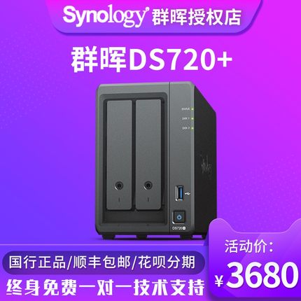 synology群晖DS720+ nas网络存储服务器 个人家庭私有云盘企业共享硬盘群辉2盘位家用硬盘盒DS718+升级款