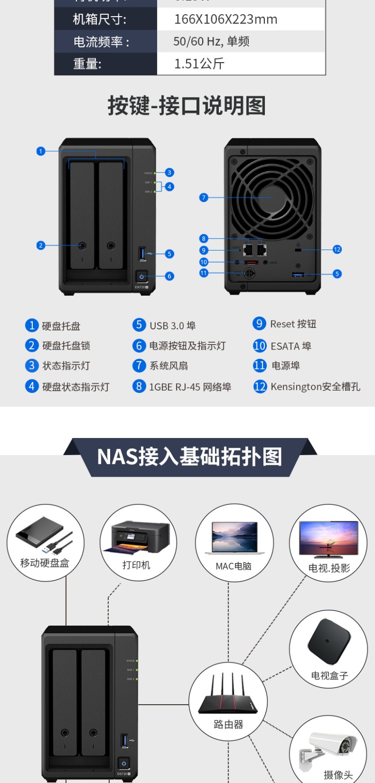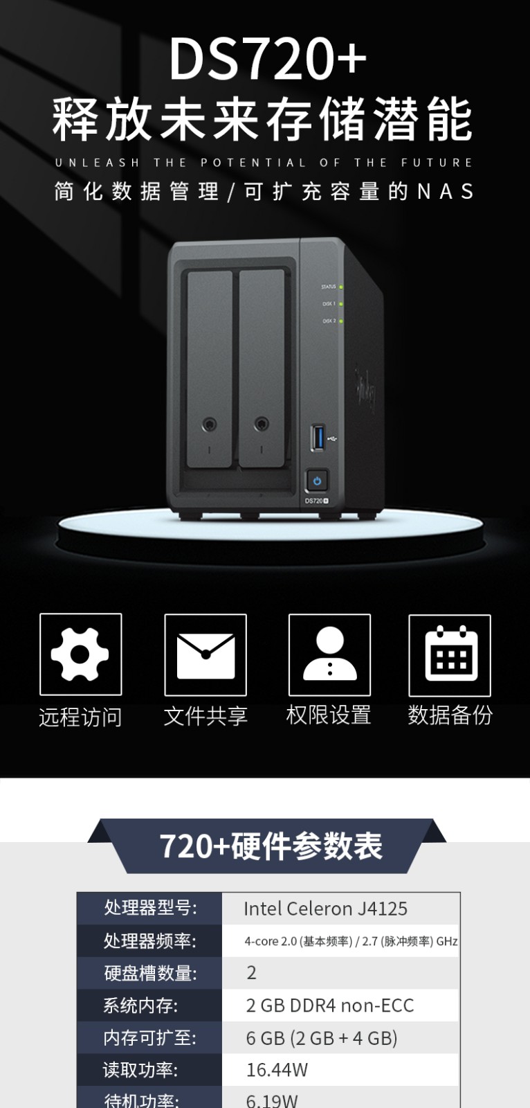 商品名称:synology群晖DS720+ nas网络存储服务器 个人家庭私有云盘企业共享硬盘群辉2盘位家用硬盘盒DS718+升级款