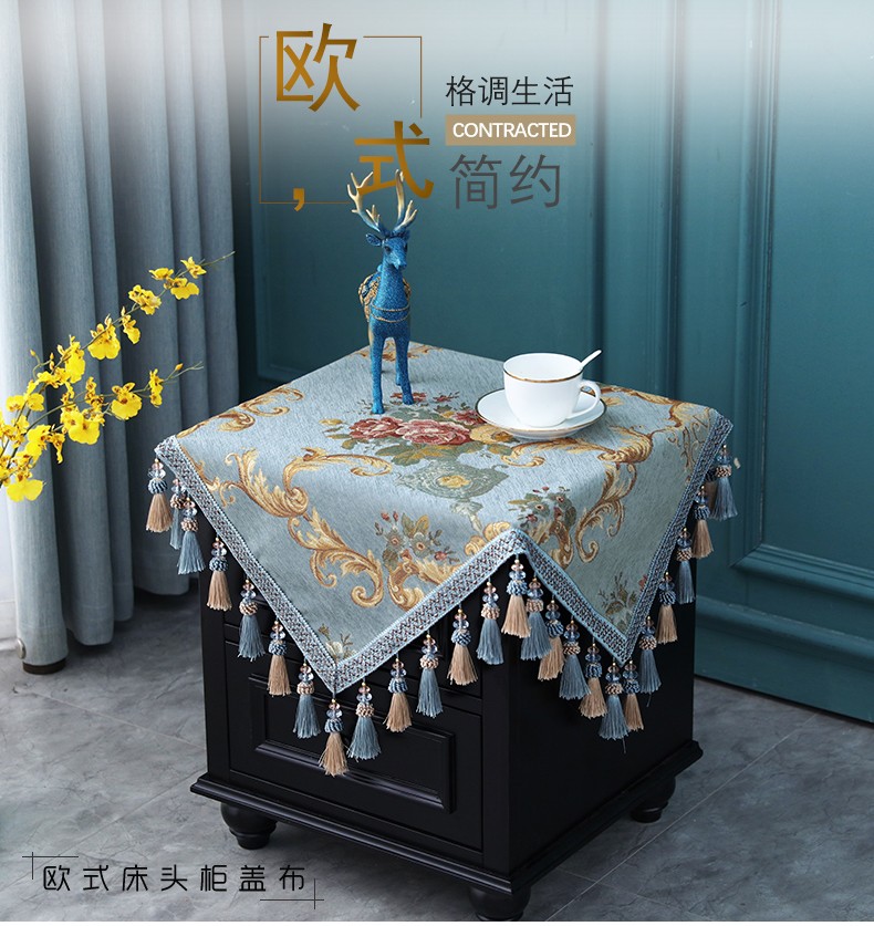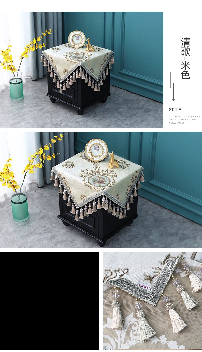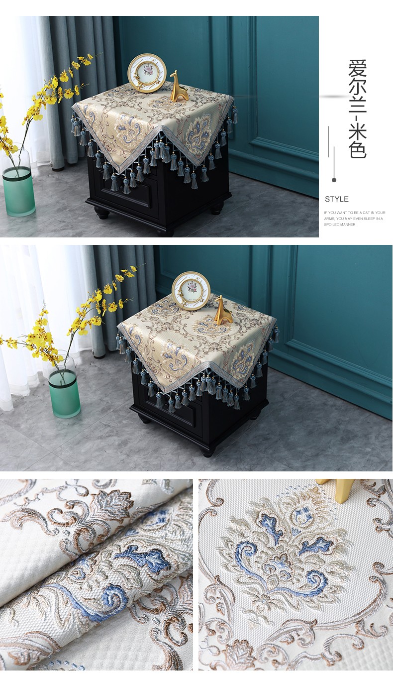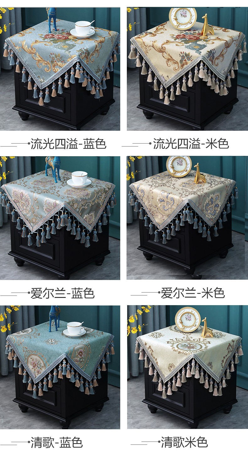 商品名称:欧式床头柜桌布盖布布艺正方形方几角几防尘台垫布方桌流苏绣花