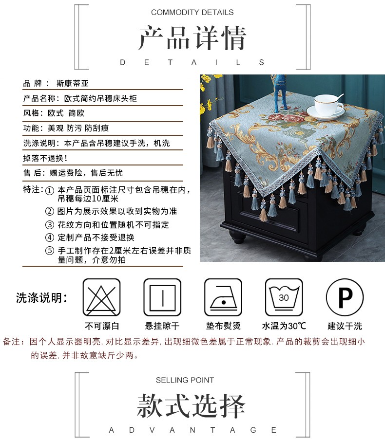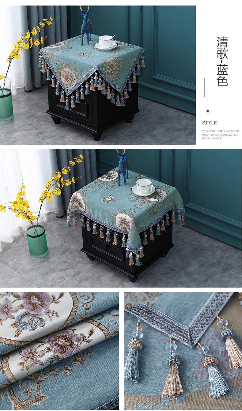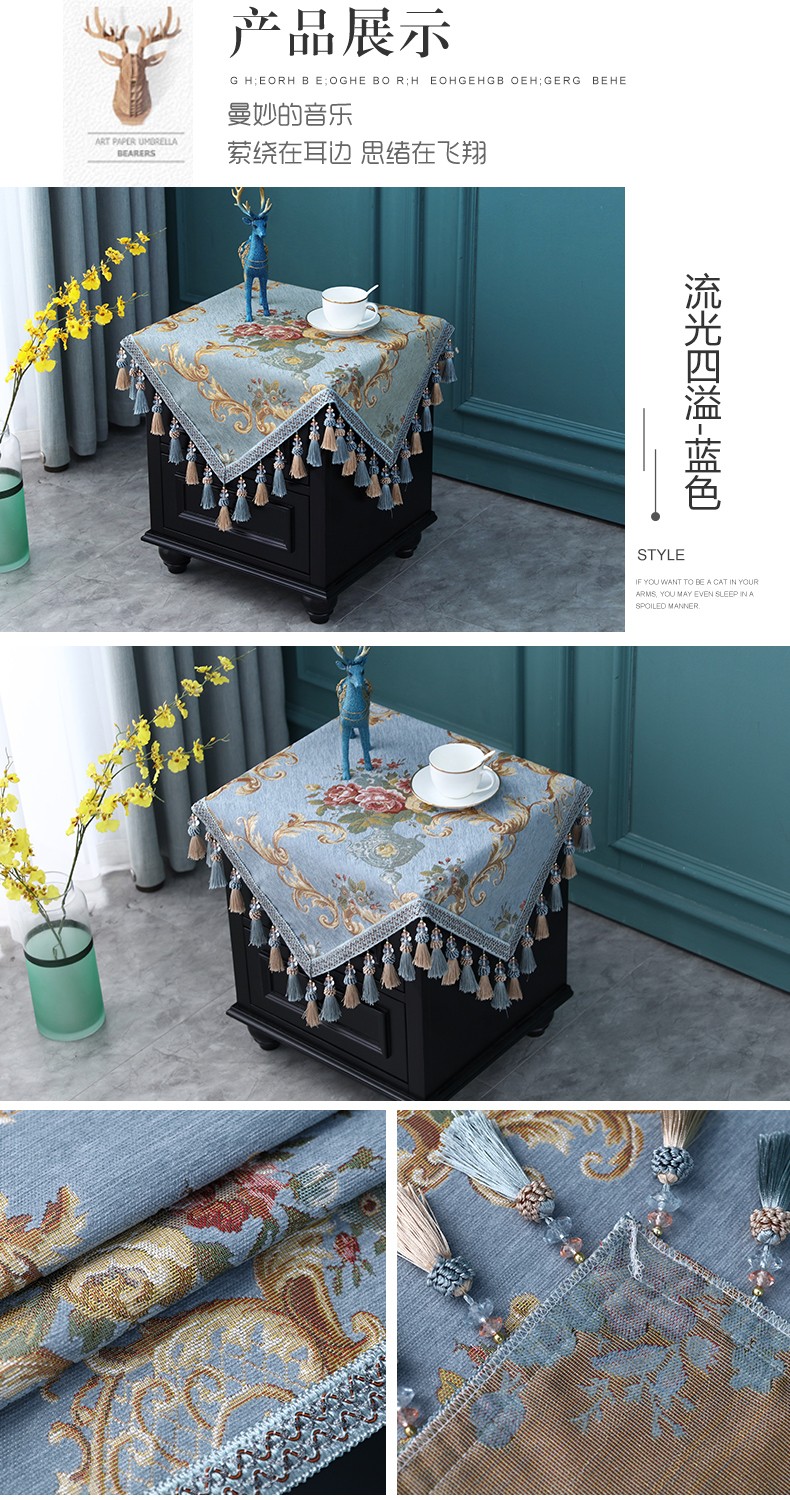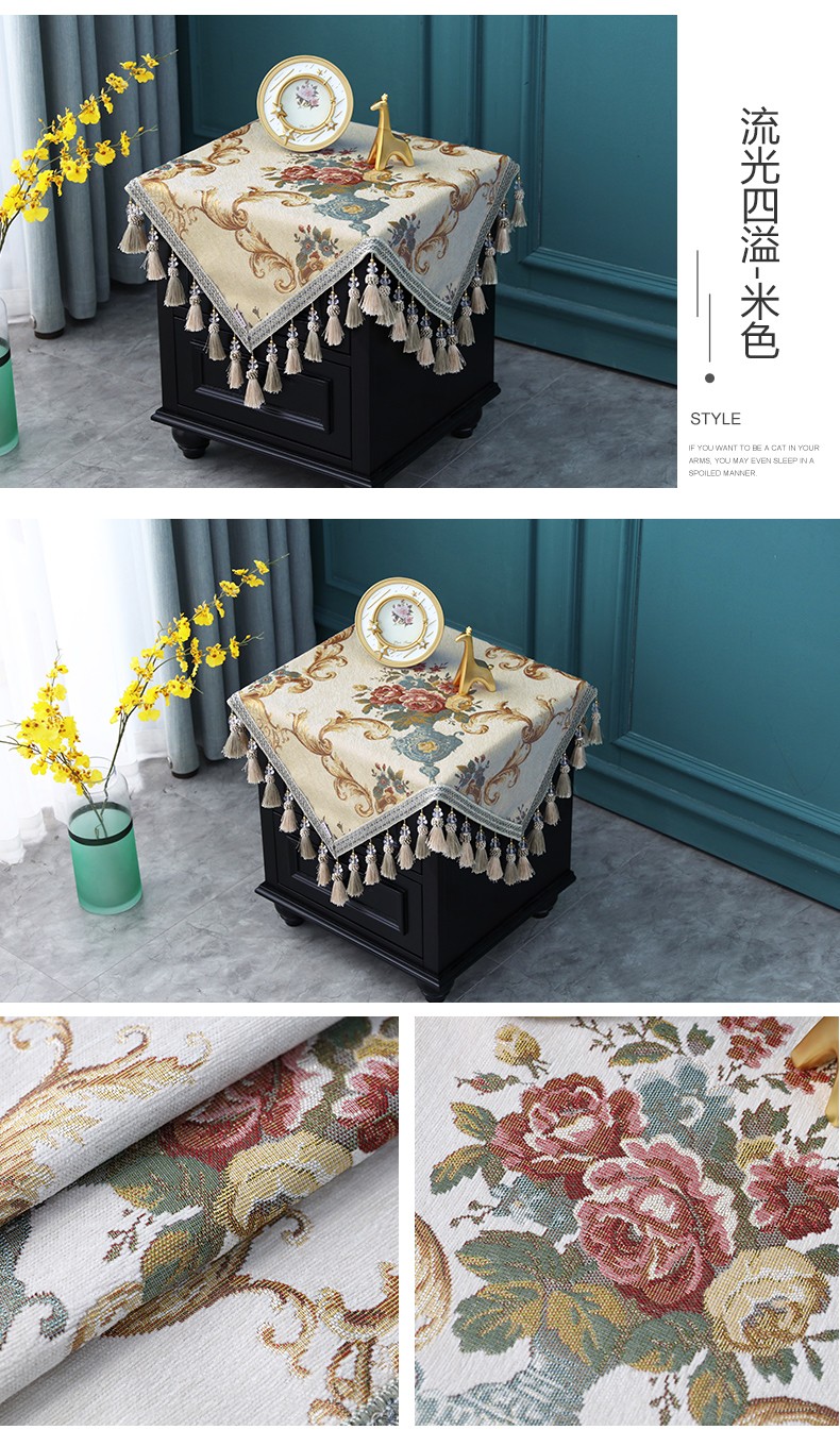 商品名称:欧式床头柜桌布盖布布艺正方形方几角几防尘台垫布方桌流苏绣花
