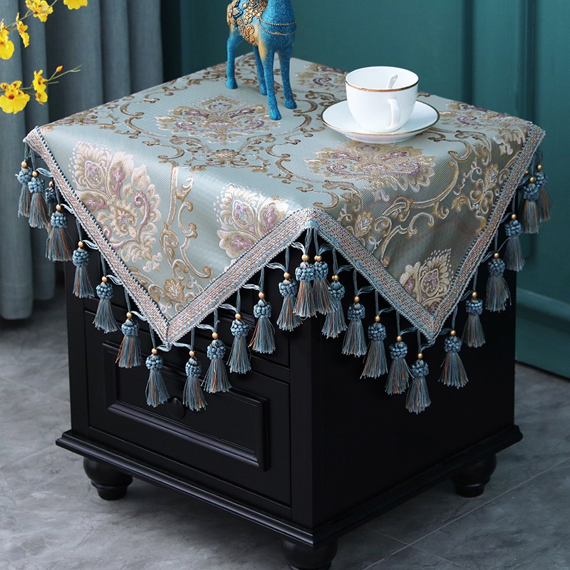 欧式床头柜桌布盖布布艺正方形方几角几防尘台垫布方桌流苏绣花