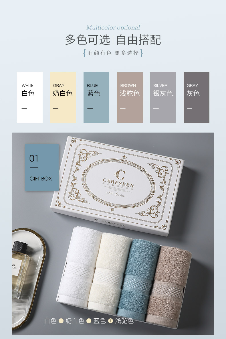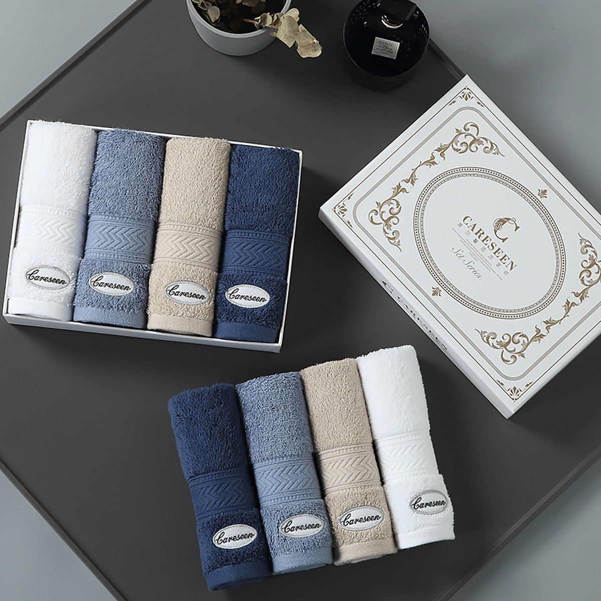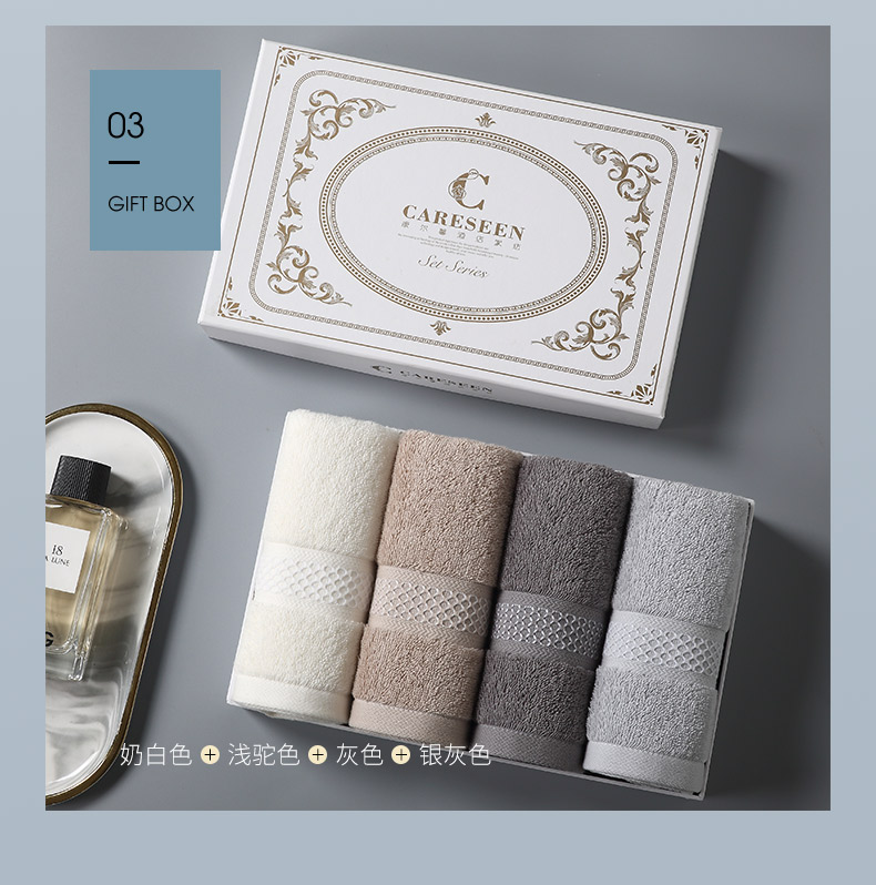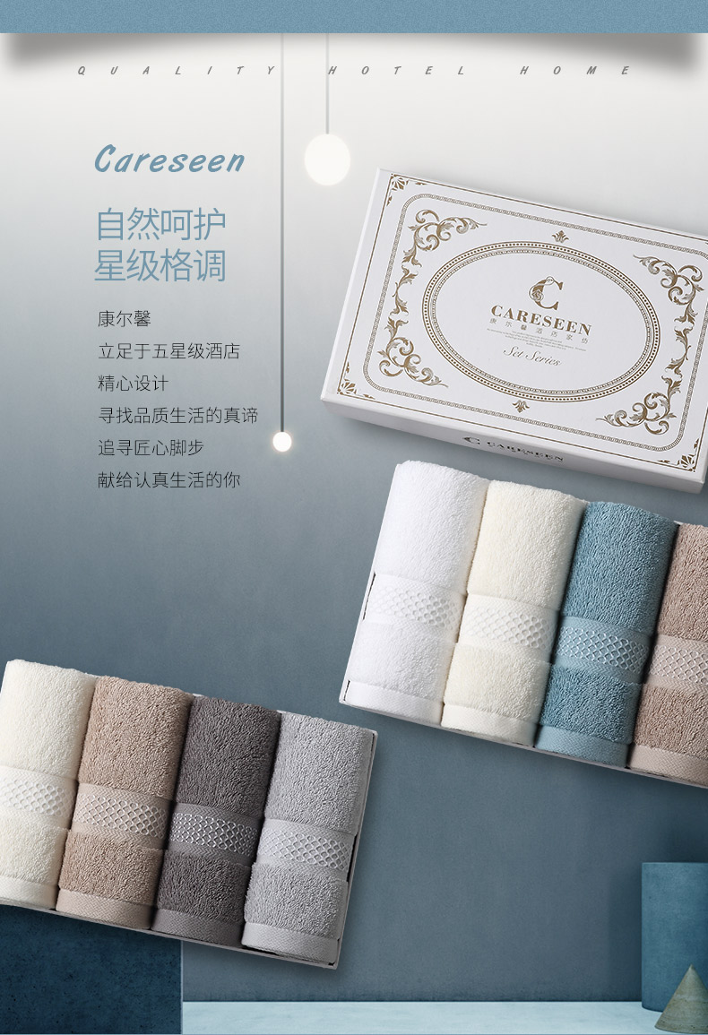 康尔馨小毛巾纯棉洗脸家用方巾4条装柔软吸水酒店礼盒装男女通用
