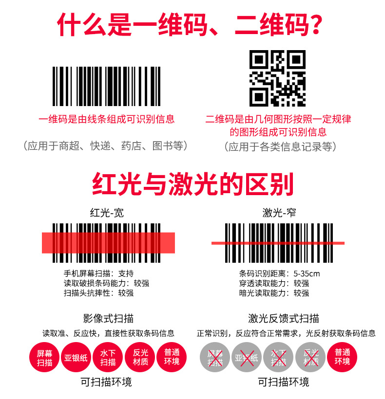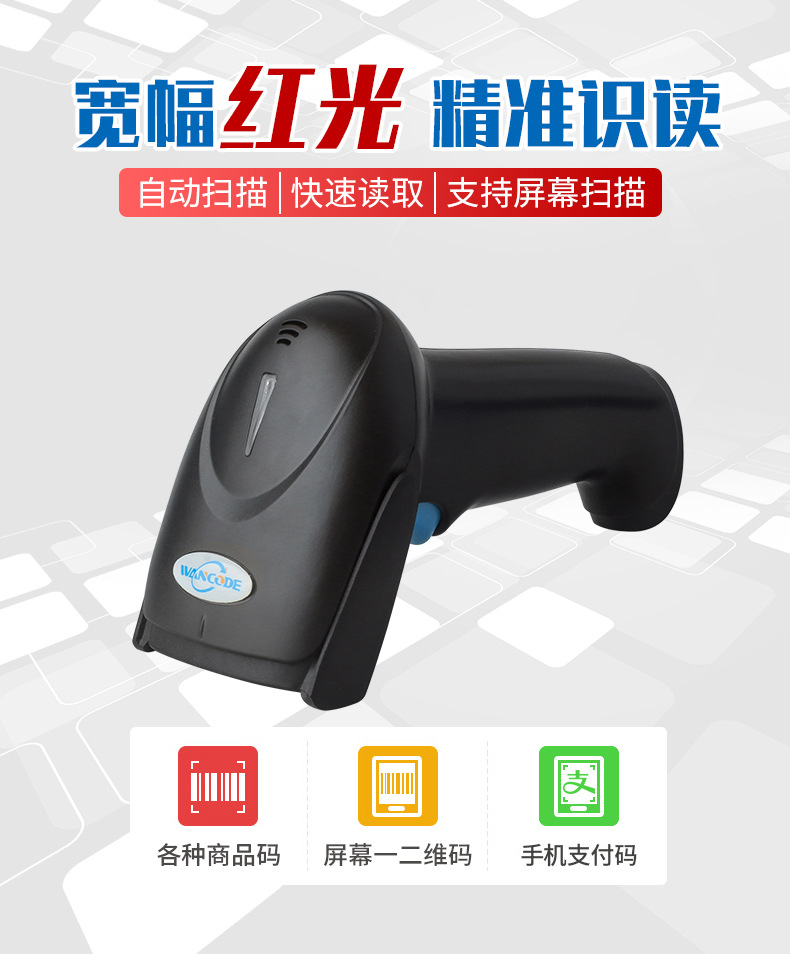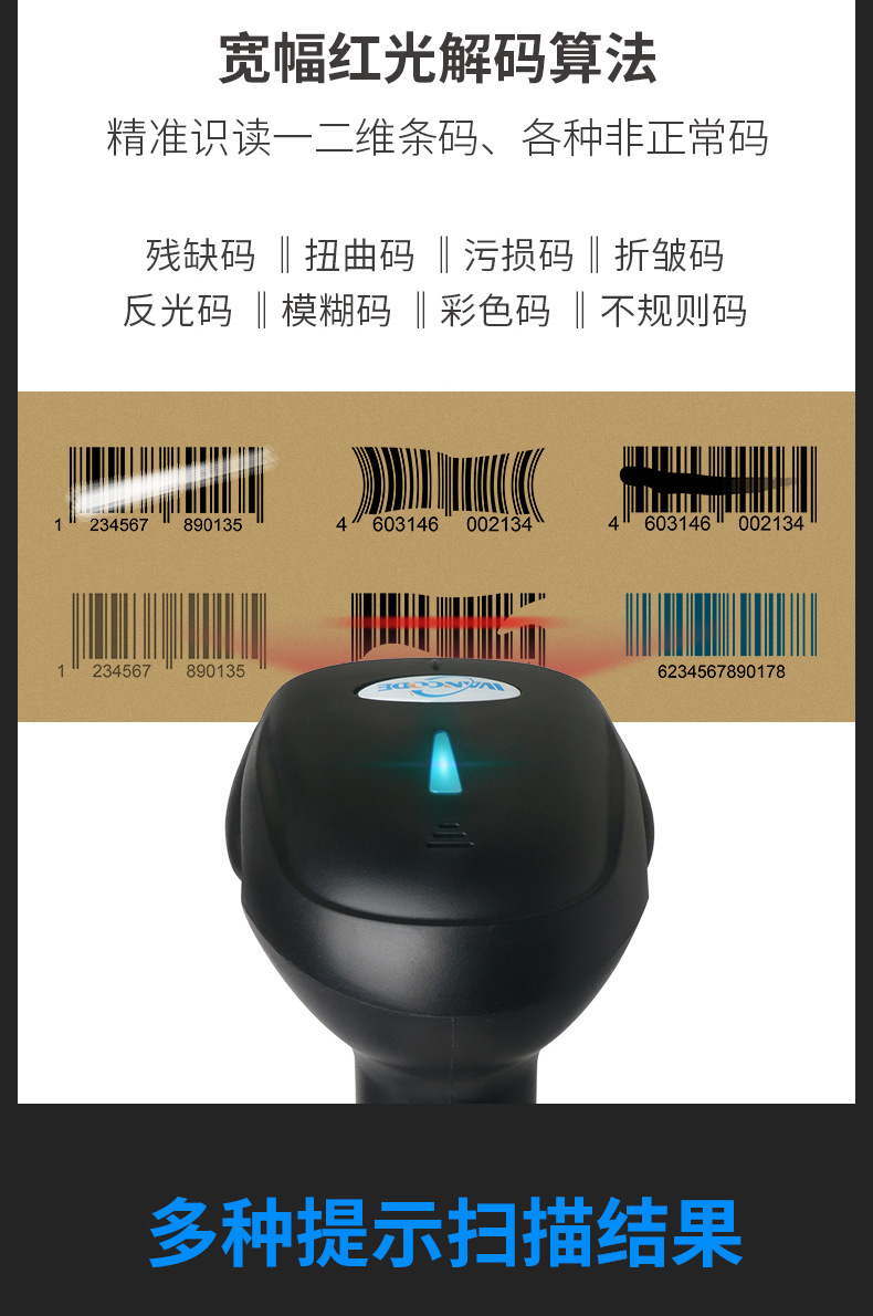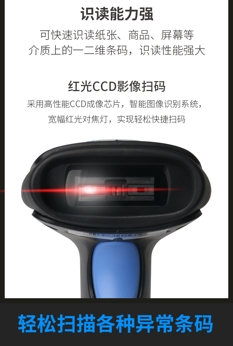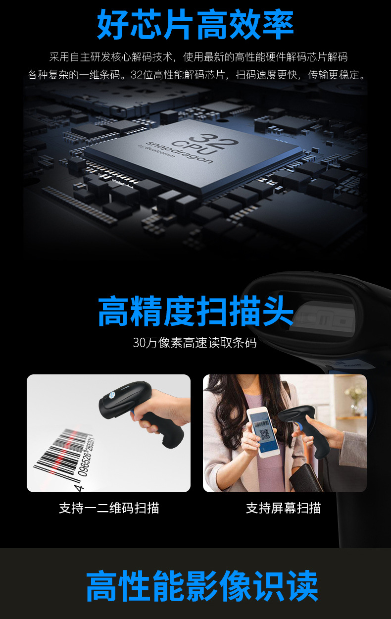 一维二维有线扫描枪无线蓝牙扫码枪条码枪疫苗扫描器医药收银快递
