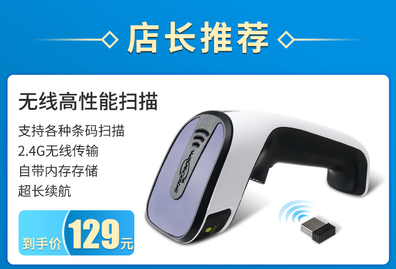 商品名称:一维二维有线扫描枪无线蓝牙扫码枪条码枪疫苗扫描器医药收银快递